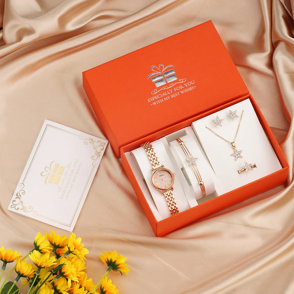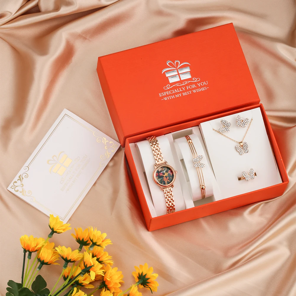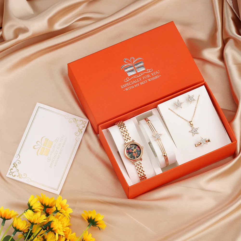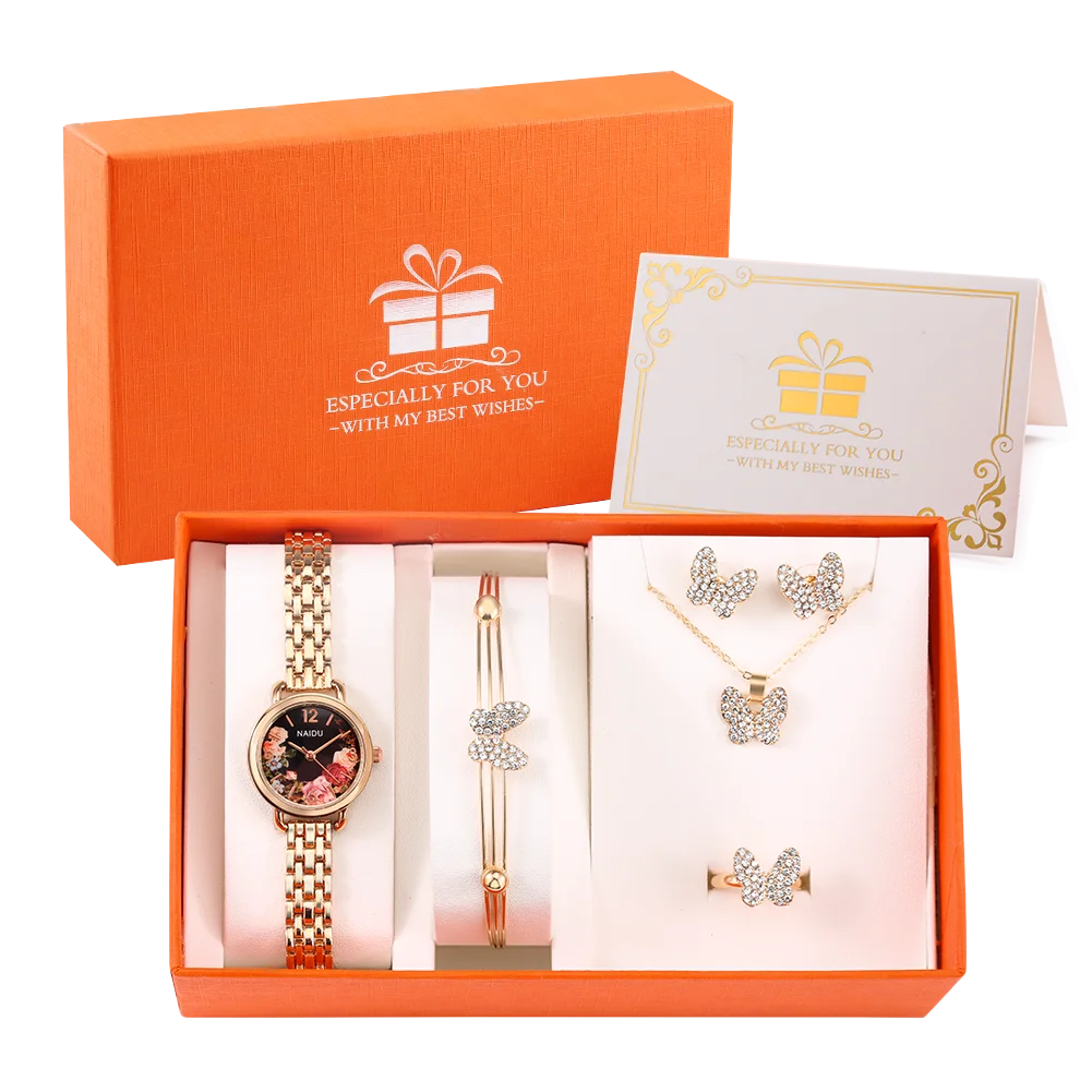 5 шт.комплект, женские кварцевые часы с бриллиантами