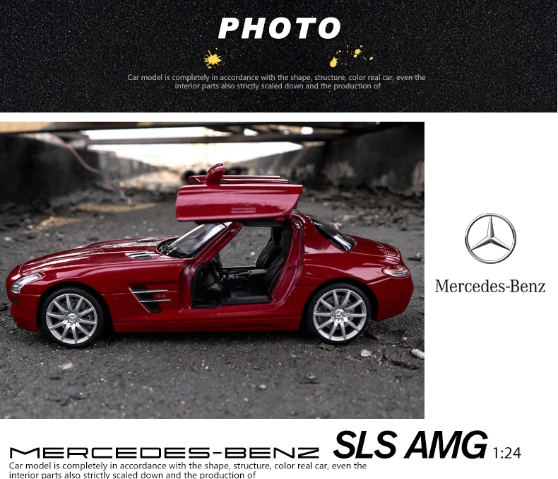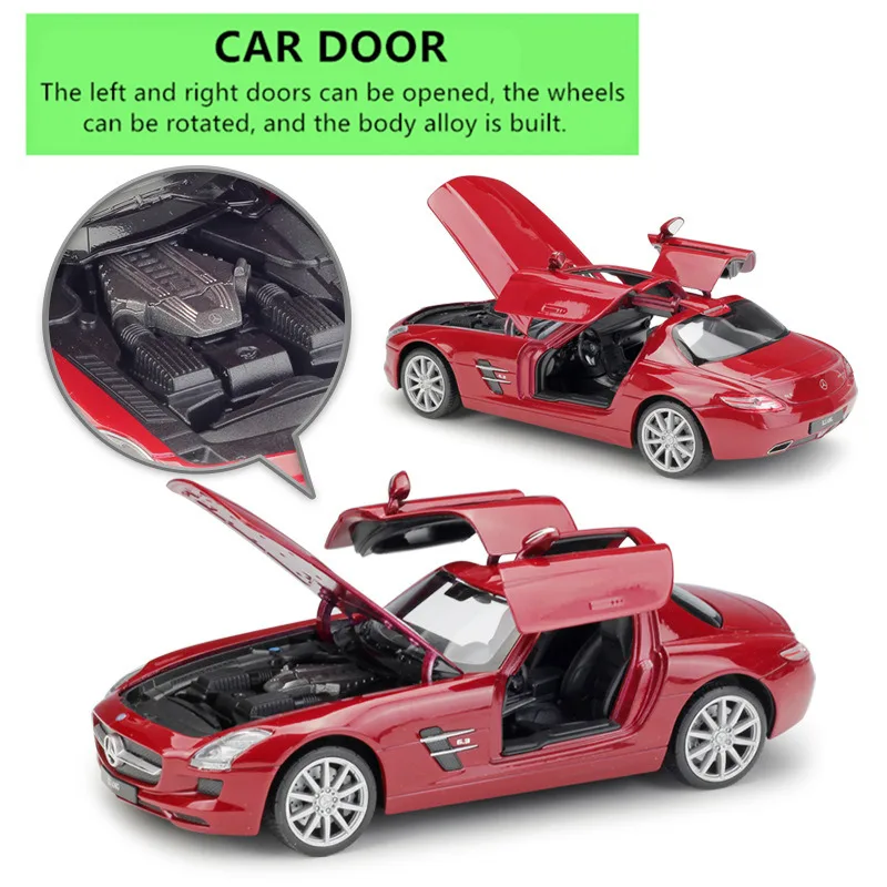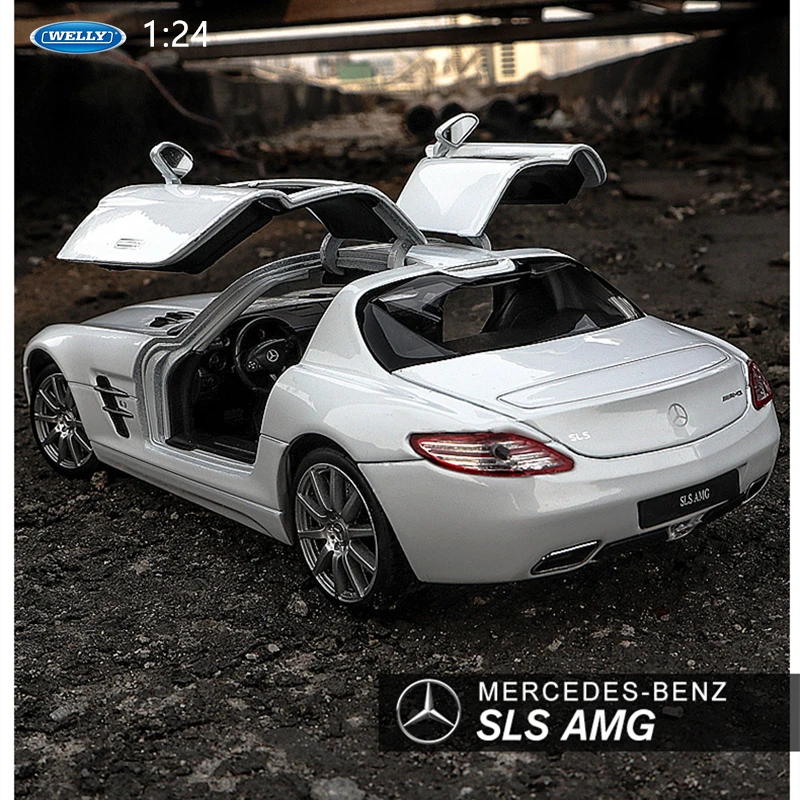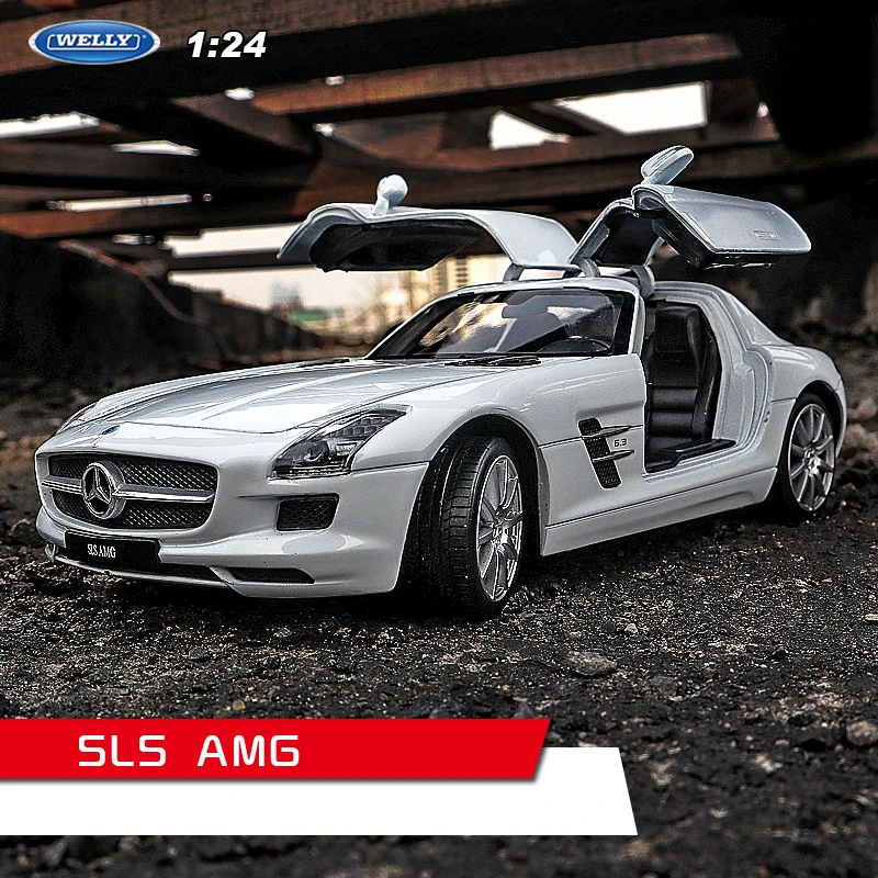 Модель спортивного автомобиля WELLY 1:24 Mercedes Benz SLS AMG, модель из сплава, игрушка, модель литая, имитация автомобиля, украшение для мальчика, коллекционный подарок B151