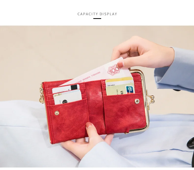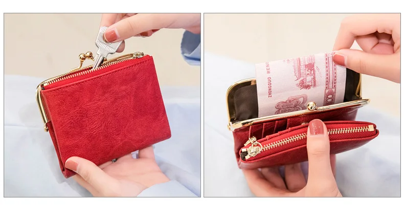 Модный дизайнерский женский кошелек с зажимом, держатель для карт, карман для монет на молнии, женские маленькие кошельки, короткий Дамский кошелек из искусственной кожи