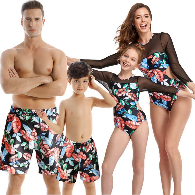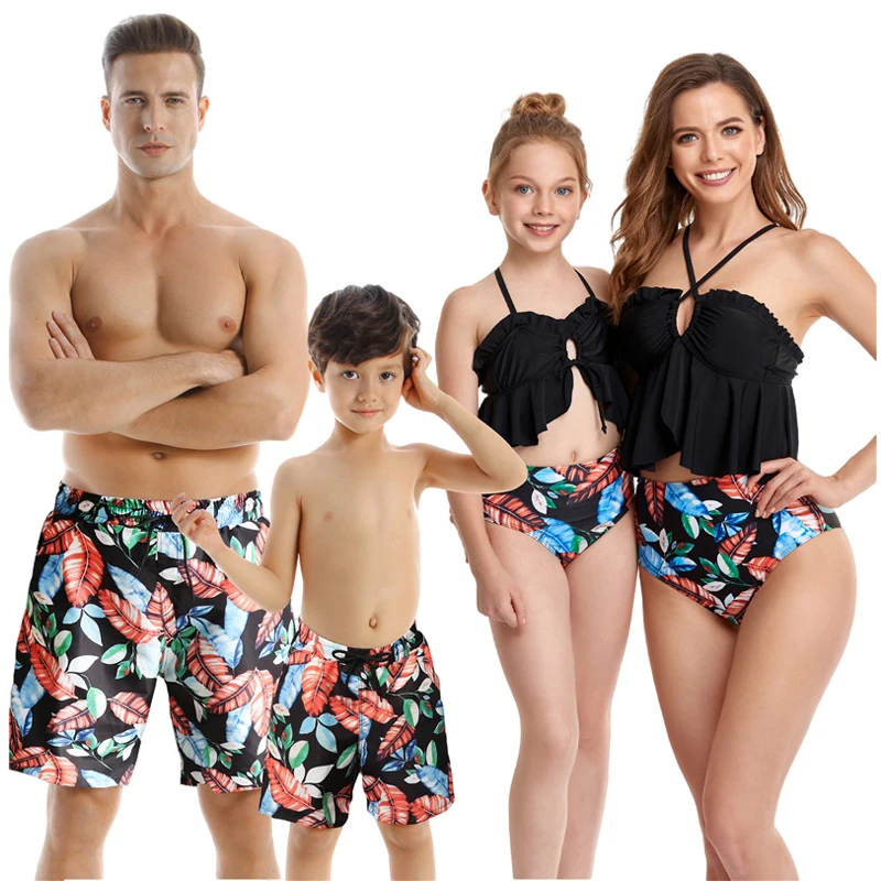 Семейная одежда для мамы и дочки, семейные купальники для мамы и дочки, купальник, бикини, пляжные шорты для папы и сына