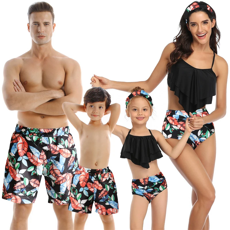 Одинаковая одежда для всей семьи; Одежда для мамы и дочки; Семейный купальник для мамы и дочки; Бикини; Пляжные шорты для папы и сына