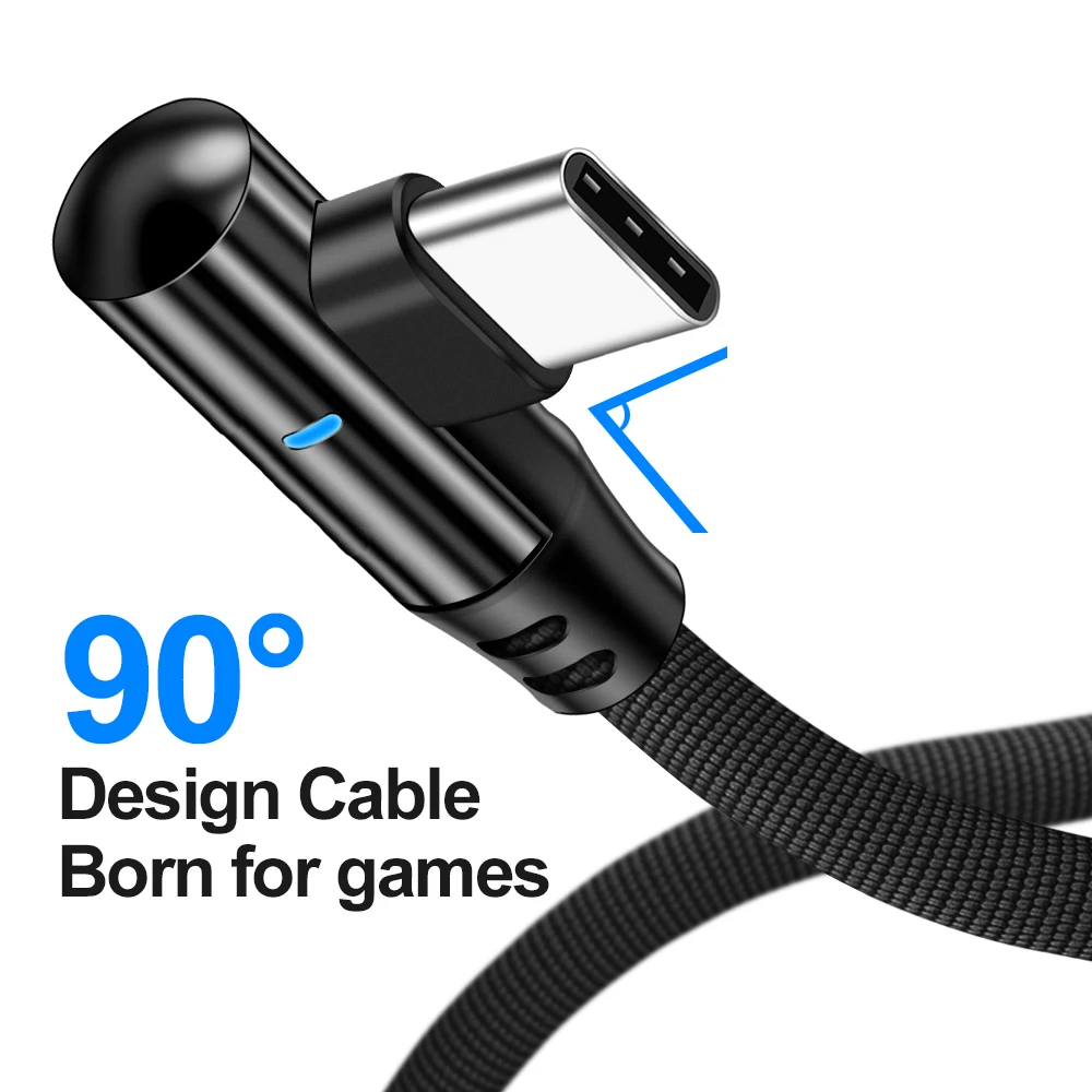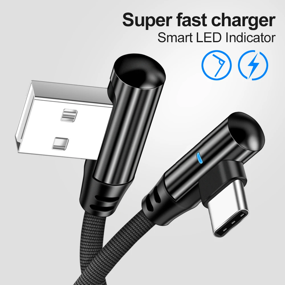Кабель USB Type-C, 90 градусов, 3 А, шнур для быстрой зарядки и пер...