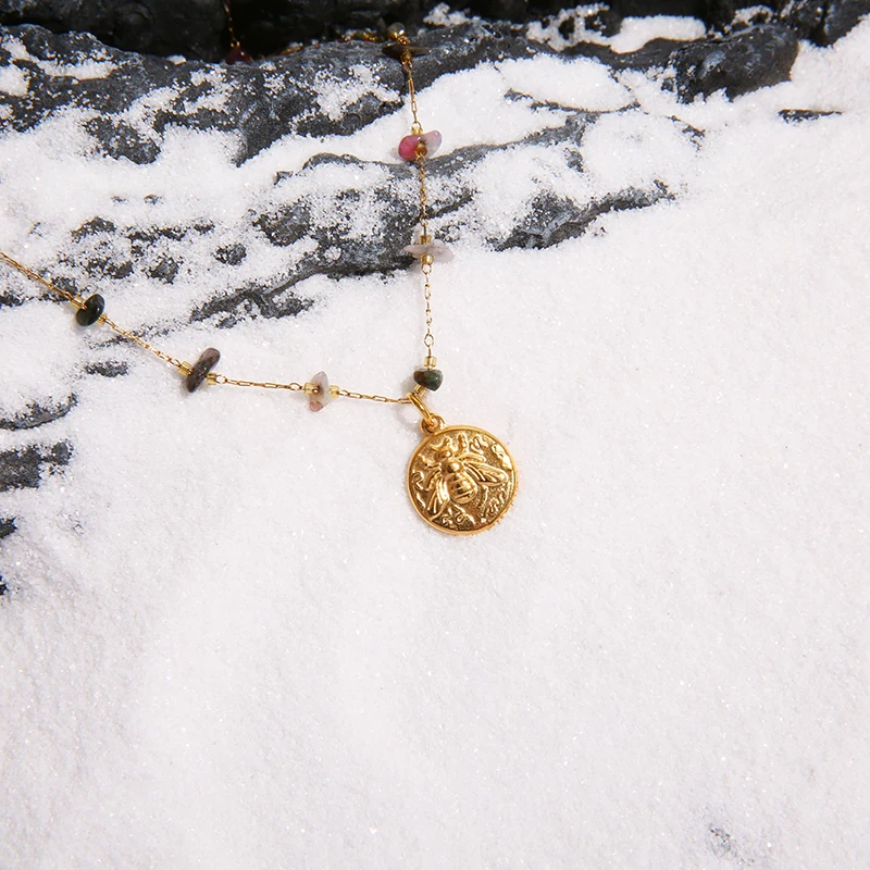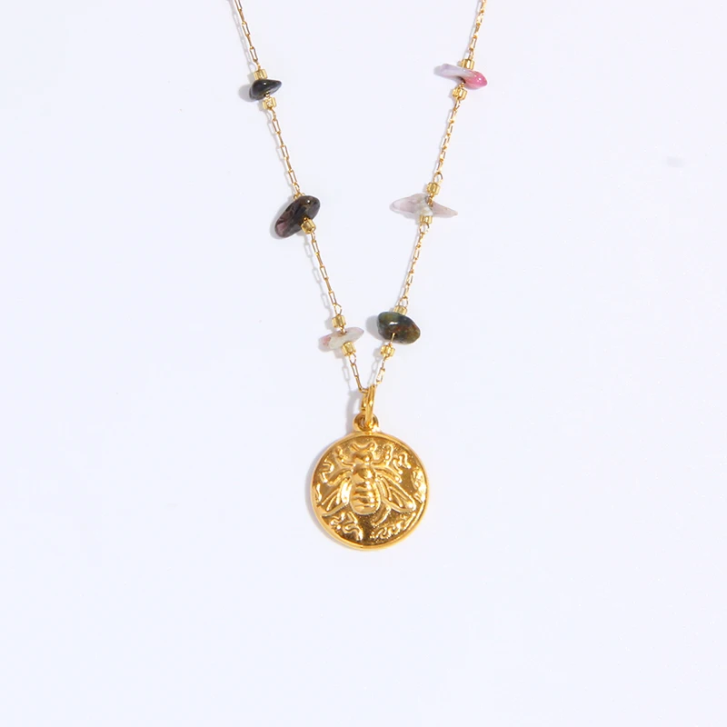 Ожерелье из нержавеющей стали с пчелиными монетами для женщин, металлический медальон, подвеска, ожерелья, каменная цепочка, чокер, женское колье