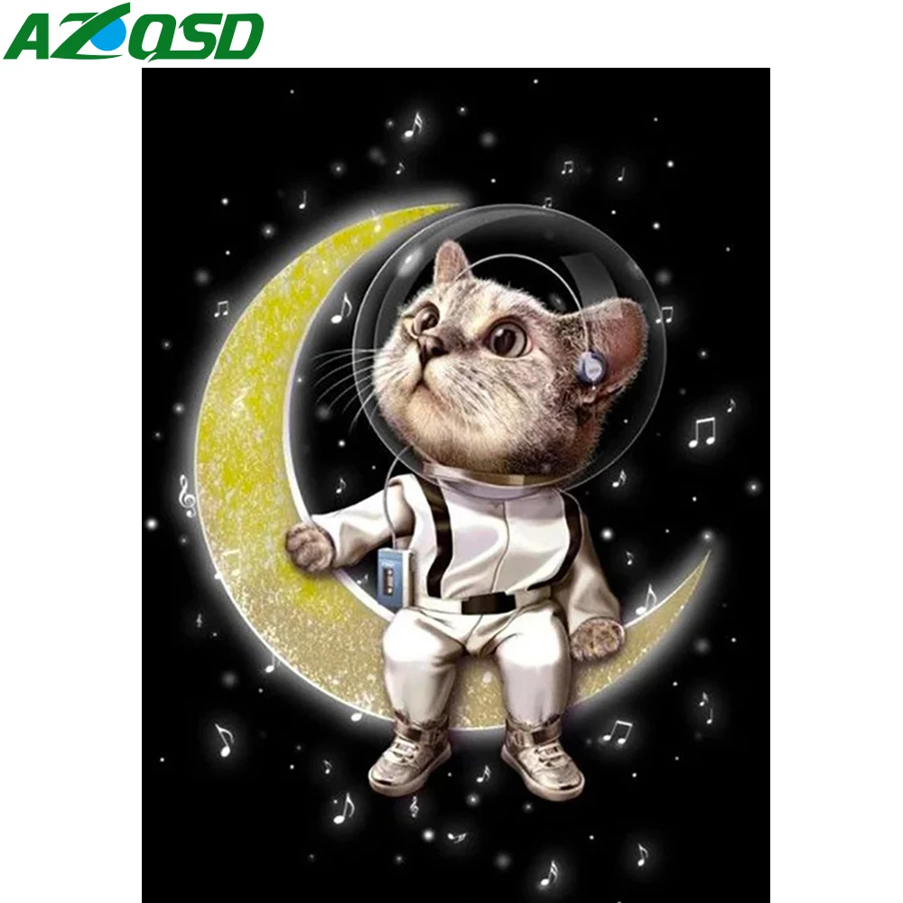 Алмазная мозаика AZQSD в виде кошки, Набор для вышивки крестиком, к...