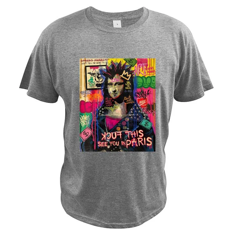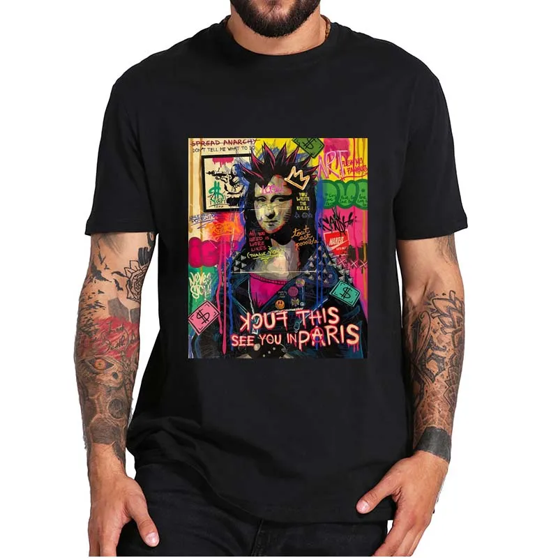 Футболка Мужскаяженская с мотивом Моны Лизы, забавная уличная одежда в стиле панк и граффити Леонардо да Винчи, Y2k, Аутентичные топы унисекс
