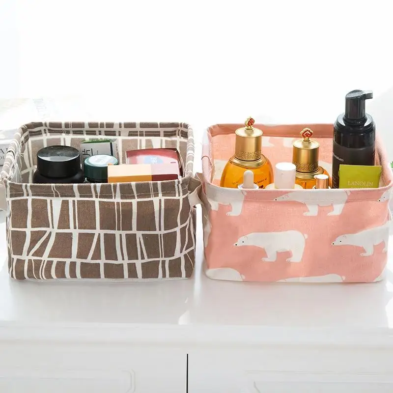 Льняная Складная Настольная корзина для хранения мелочей, коробка д...