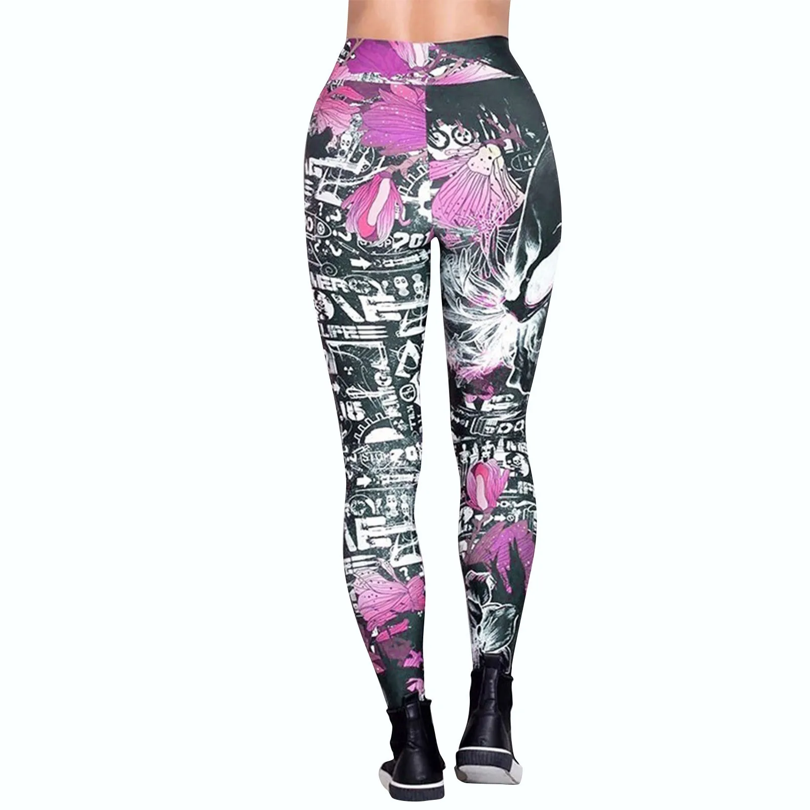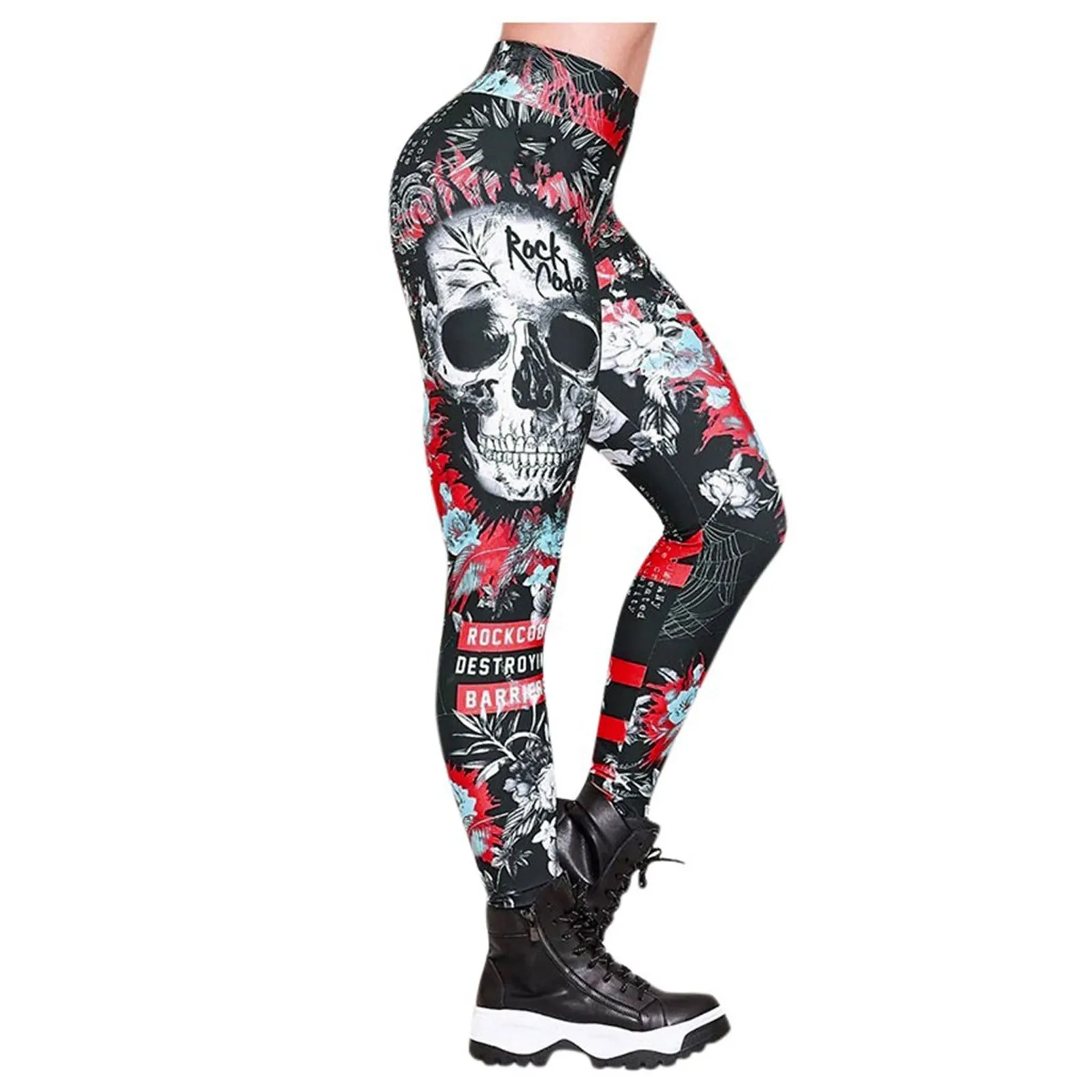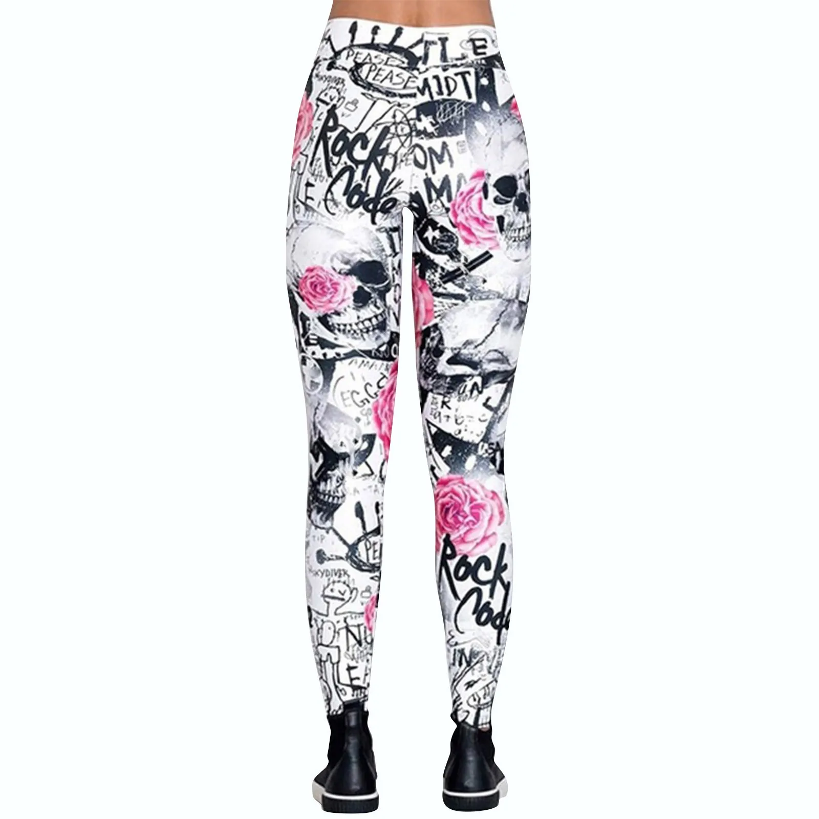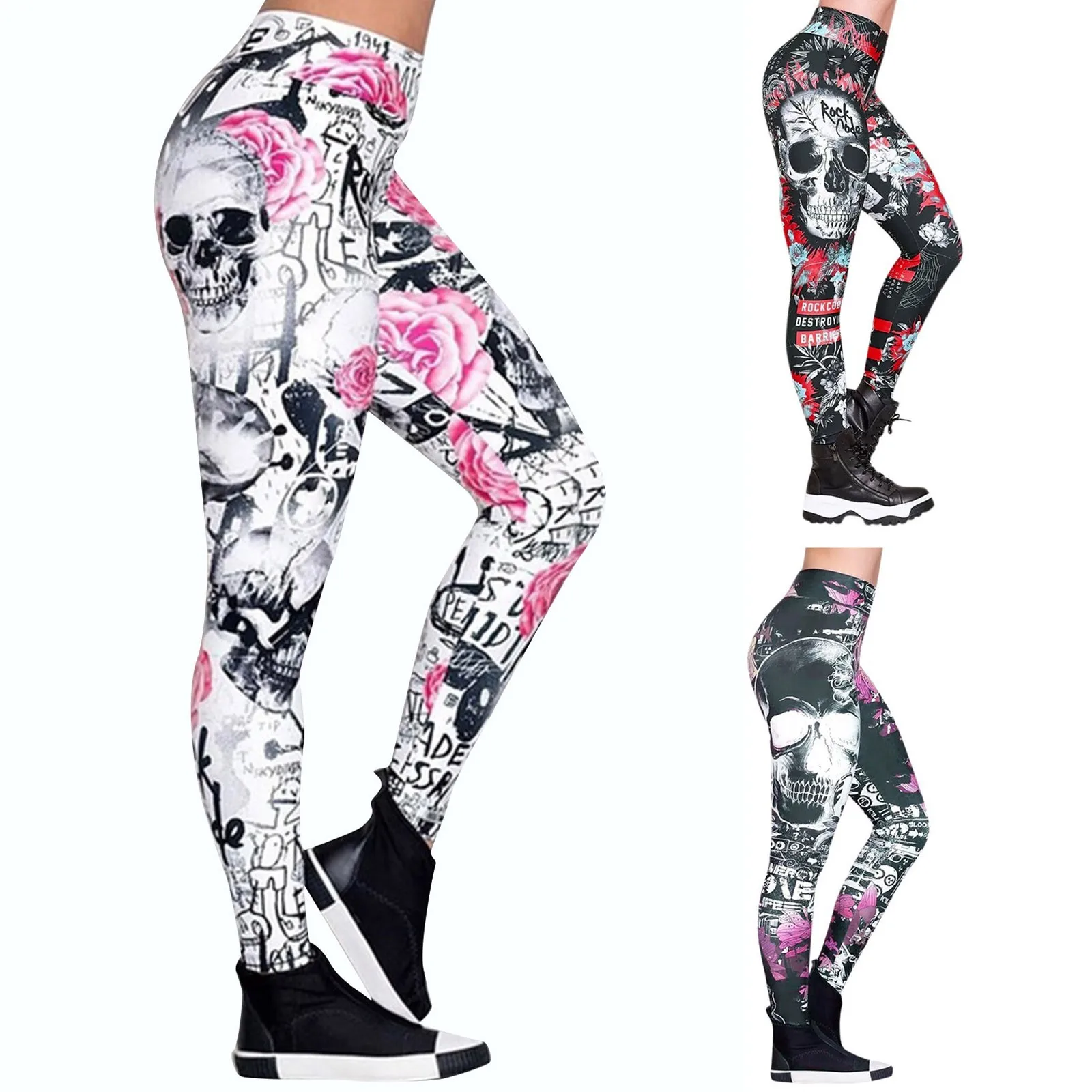 Женские леггинсы для тренировок на Хэллоуин с принтом черепа, штаны для фитнеса и йоги