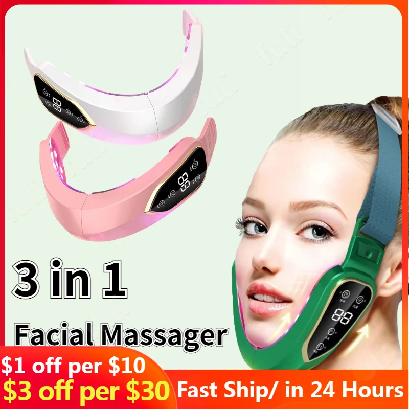 V-образный Массажер для лица, подтягивающий пояс для подтяжки подбородка, прибор для подтягивания подбородка, с красным, голубым светодиодным светом, вибромассажер для лица для похудения, лифтин для лица