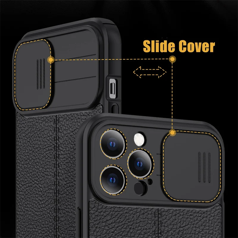 Роскошный кожаный чехол с текстурой личи для iPhone 13 12 11 Pro Max Mini X XS XR 7 8 Plus SE 2020 защитный чехол для объектива слайдера камеры