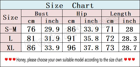 Примечание по размеру: 1. Пожалуйста, следуйте таблице размеров, чтобы выбрать размер перед покупкой товара. 2. Все еще не уверены в размере? Мы бы хотели посоветовать, основываясь на ваших измерениях груди, талии и бедер. 3. Пожалуйста, учитывайте разницу в 1-3 см в соответствии с измерениями вручную. (Все размеры указаны в см, обратите внимание: 1 см = 0,39 дюйма)