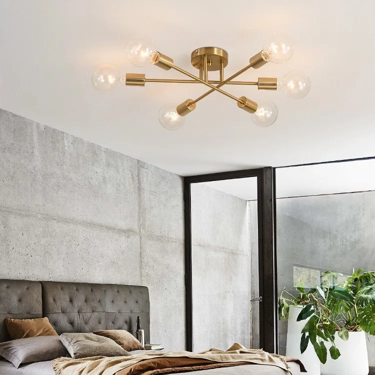 Современная люстра Спутник, полувстроенный потолочный светильник, лампа с матовым античным золотом, 6 лампочек в скандинавском стиле, украшение для дома