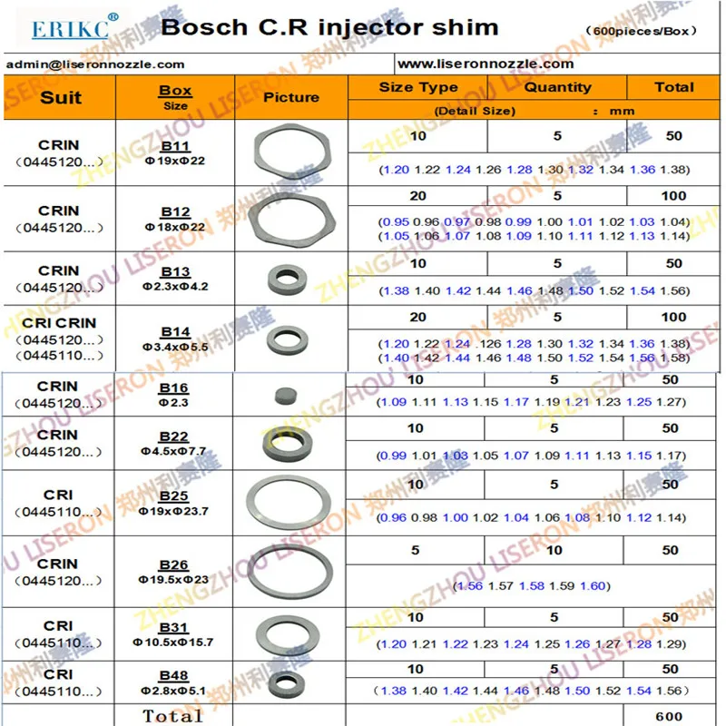 50 шт., регулировочные прокладки для инжектора ERIKC, размер B16, 1...