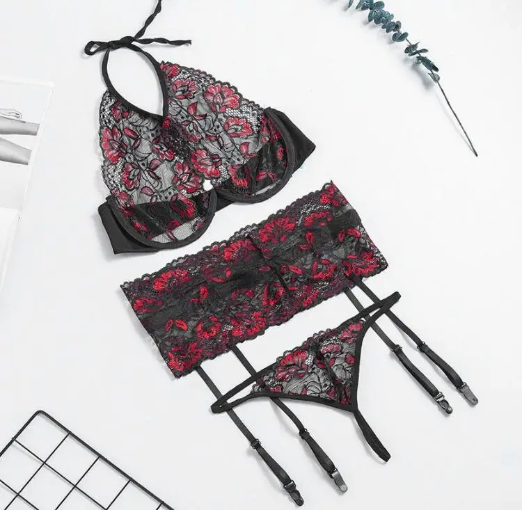 Экзотические набор Для женщин сексуальные с вышитыми цветами размер...