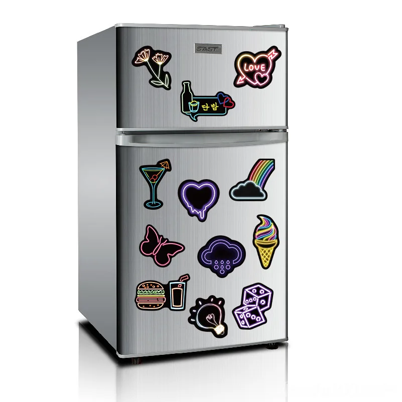 Холодильники, чемоданы, стены, полы, умывальники, очки, чашки, Пеналы и другие гладкие поверхности.
