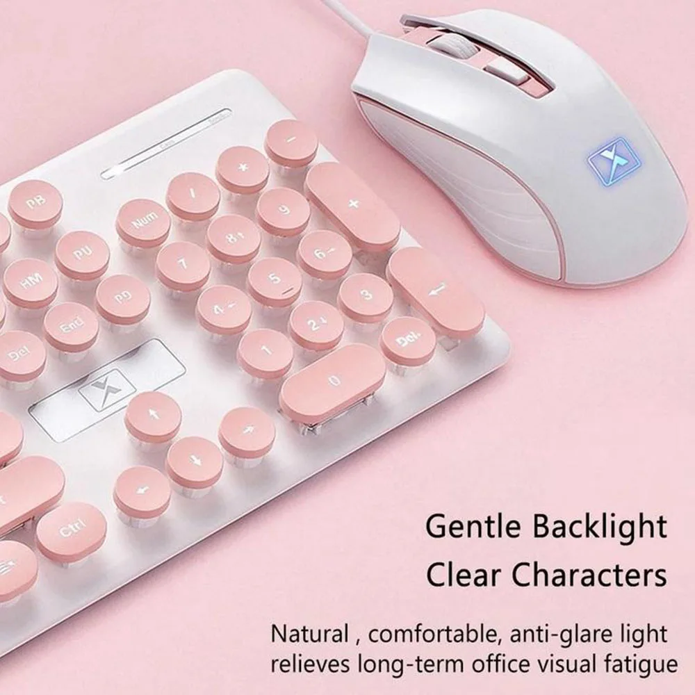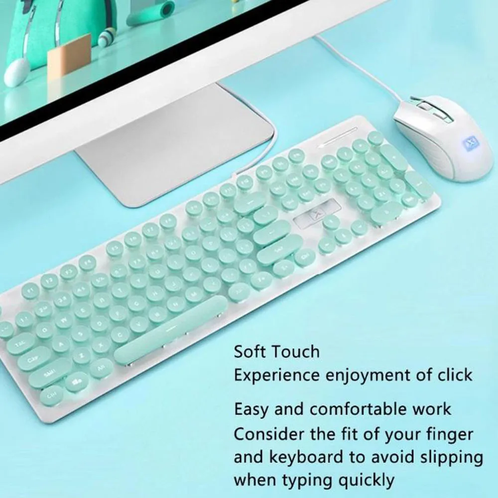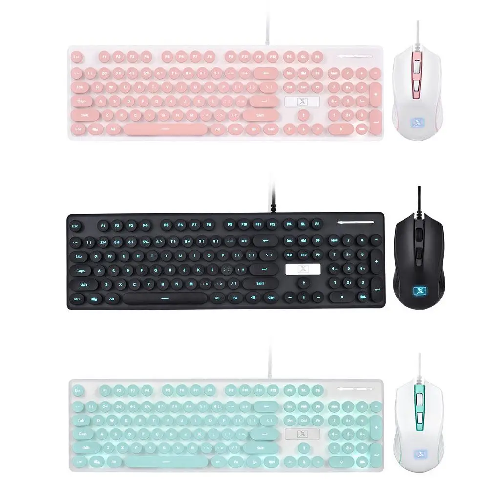 Портативный N518 винтажный Набор клавиатуры мышь Проводная стимпанк винтажная ПК игровая с круглой клавишей Кепка мультимедийная кнопка клавиатура мышь