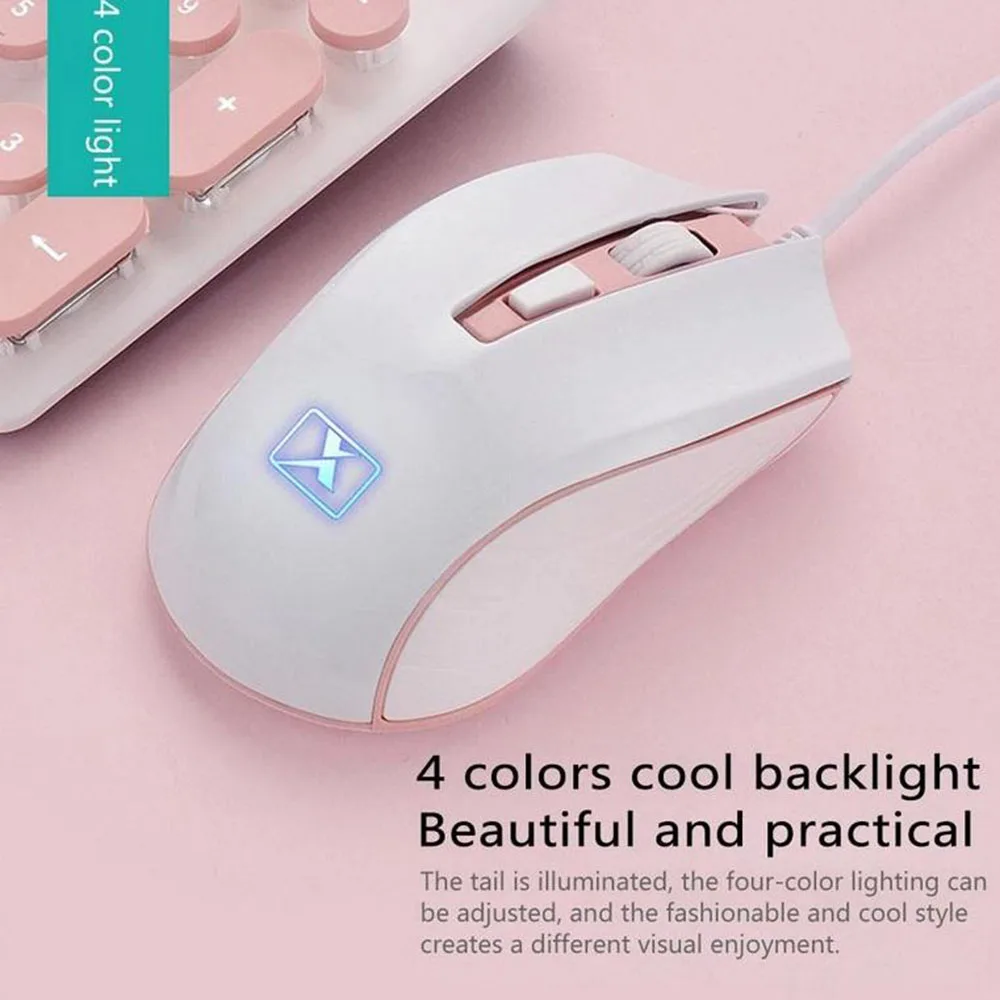 Нежная подсветка. Четкие символы: естественный, удобный, антибликовый светильник снимает длительную усталость в офисе.4 цвета крутой подсветки. Красиво и практично: Хвост горит, можно регулировать четырехцветное освещение, а модный и классный стиль создает различное визуальное наслаждение.Переключатель DPI-key: подходит для различных сцен и быстро переключает скорость движения мыши 800DPI домашний отдых> 1200DPI рабочий чертеж> 1600DPI игры.