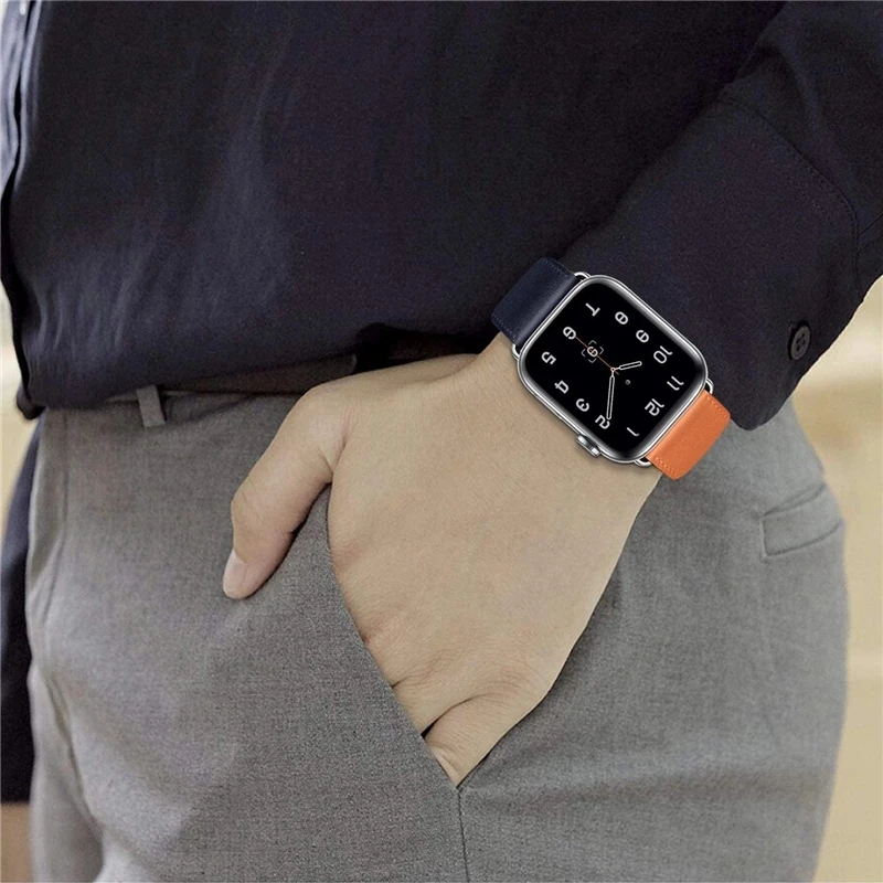 Ремешок кожаный для Apple watch band 44 мм 40 мм 45 мм 41 мм 38 мм ...