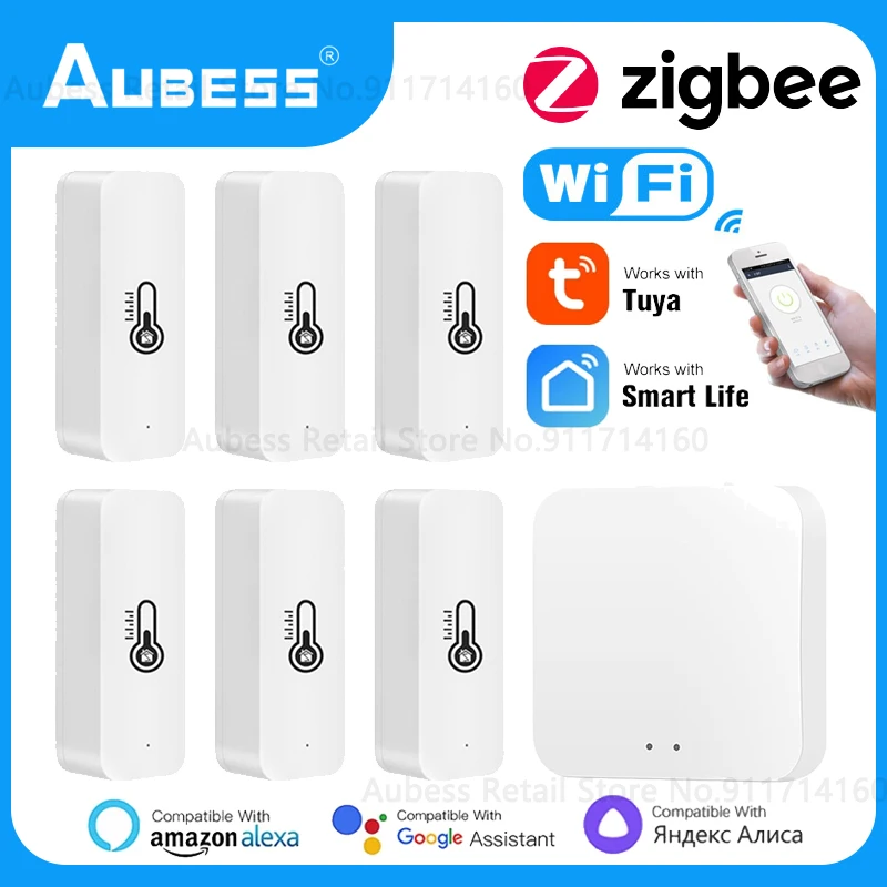 Умный датчик температуры и влажности Aubess Tuya Wi-FiZigBee, комнатный термометр, гигрометр для Smart Life, помощник Google Home, Alexa