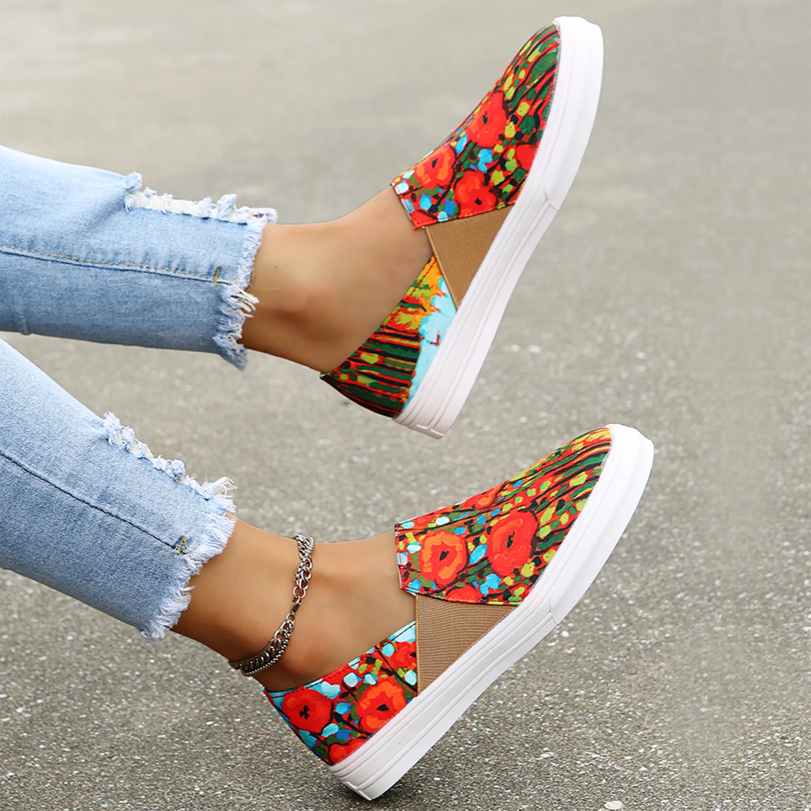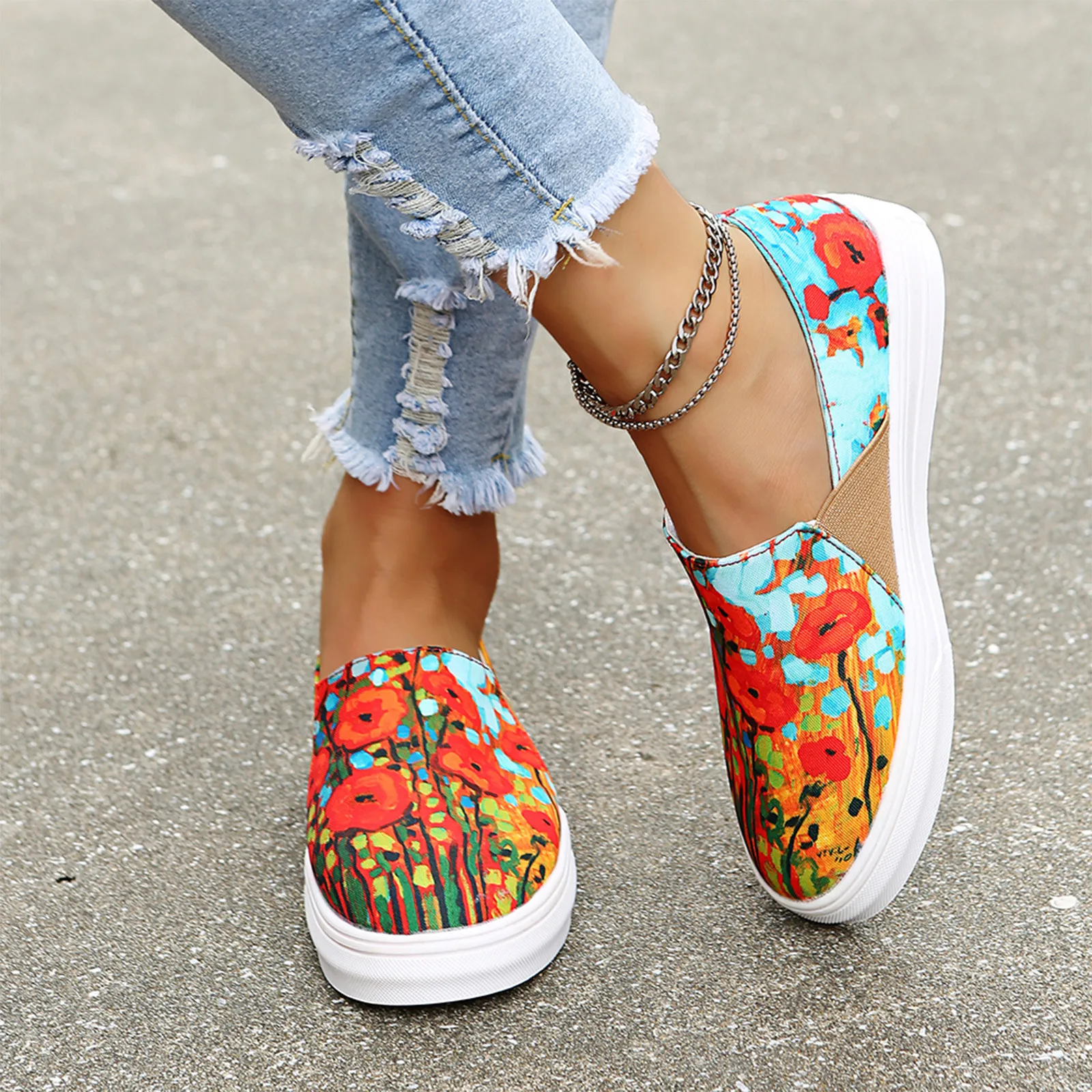Кроссовки женские легкие с круглым носком, дышащие холщовые туфли на платформе, без застежки, с цветочным принтом, #35