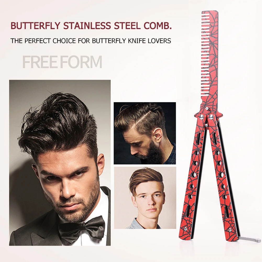 Складная расческа из нержавеющей стали тренировочный нож-бабочка расческа для бороды щетки для усов инструмент для укладки волос