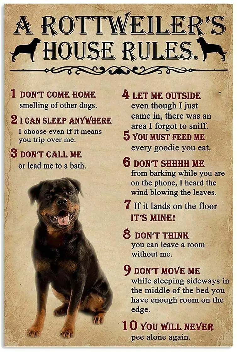 Металлический жестяной знак Правила Дома роттвейлера, Новый Винтажный Декор для дома, офиса, ресторана, гаража, бара