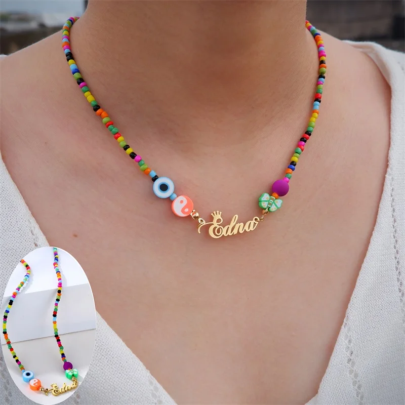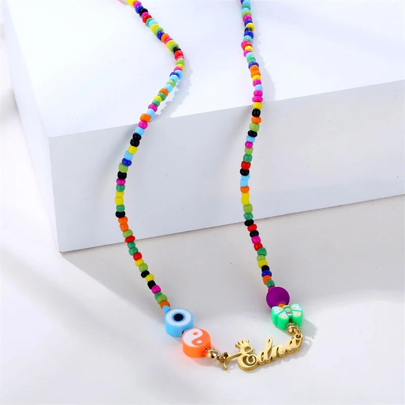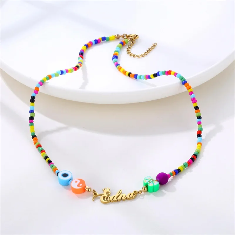 Женское пляжное ожерелье с бисером, из нержавеющей стали