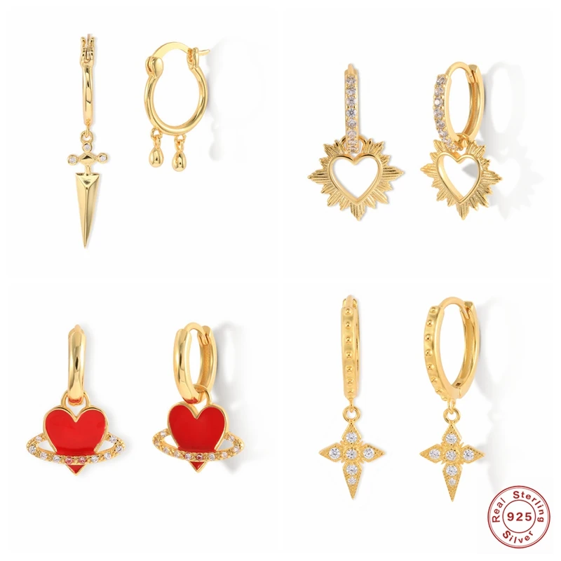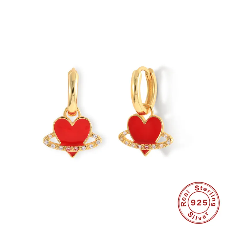 Женские серьги-подвески с красным сердцем CANNER, из стерлингового серебра 925 пробы с эмалью и цирконием, серьги-подвески с крестом, 925