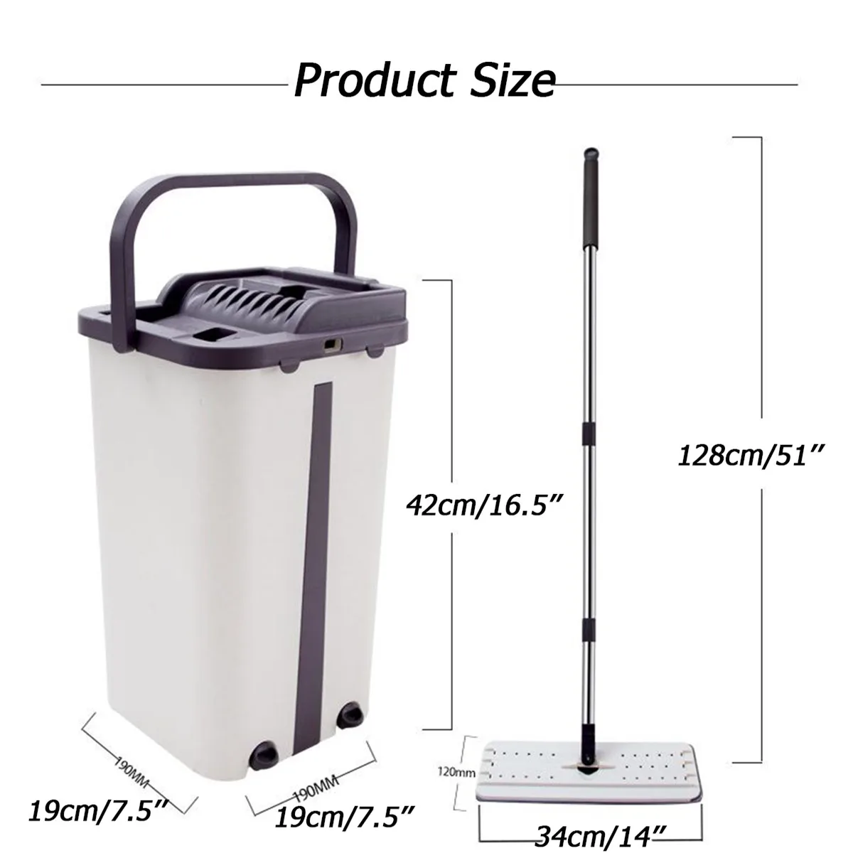 Посылка включает:1 Швабра1 ведро2x прокладки из микрофибрыХарактеристики:Название продукта: плоская ШвабраМатериал: АБС + волокно + нержавеющая стальОбласть применения: деревянный пол, плиточный пол, мрамор и другиеРазмер (основной корпус): 42x19x1 9 см/16,5 ''x 7,5'' x 7,5''Швабра около 128x34x1 2 см/51 ''x 14'' x 4,7''