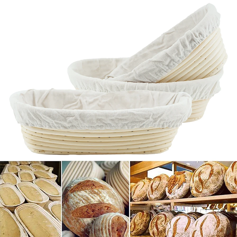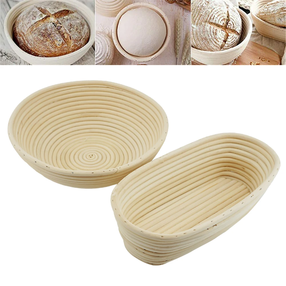 Овальнаякруглая корзина для брожения теста для хлеба, плетеная корзина из ротанга, корзины для переработки массы, кухонные инструменты из натурального ротанга