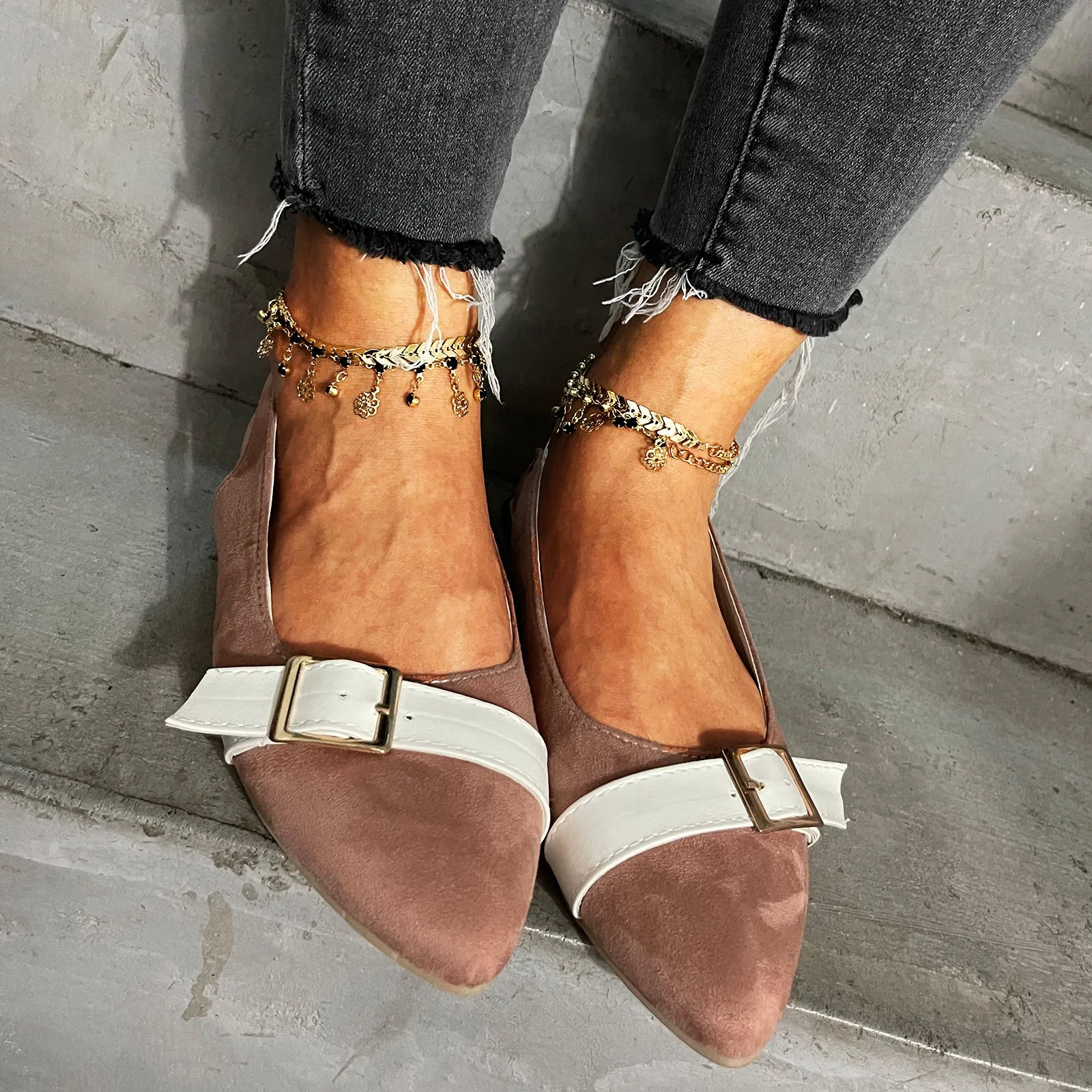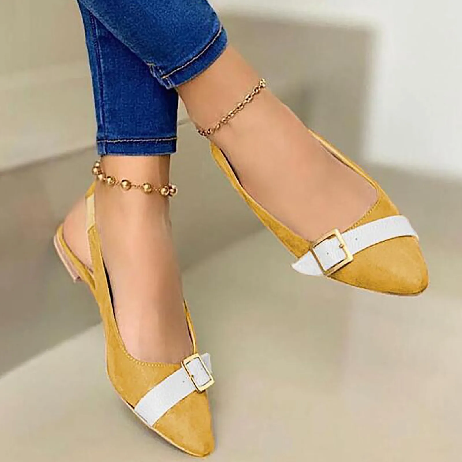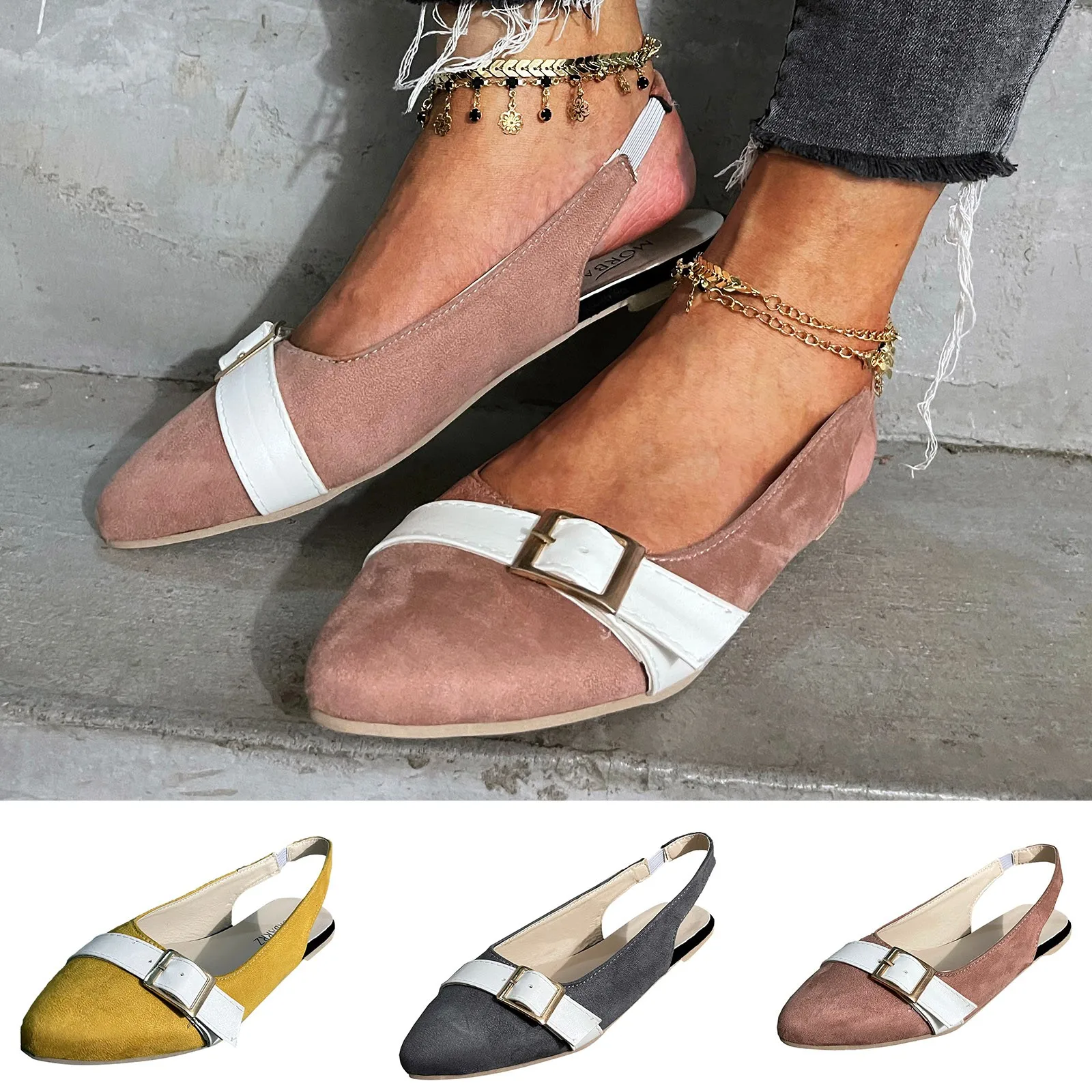 Женские тонкие туфли; Острый носок; Эластичный пояс с пряжкой; Туфли на плоской подошве; Женские тонкие туфли с закрытым носком