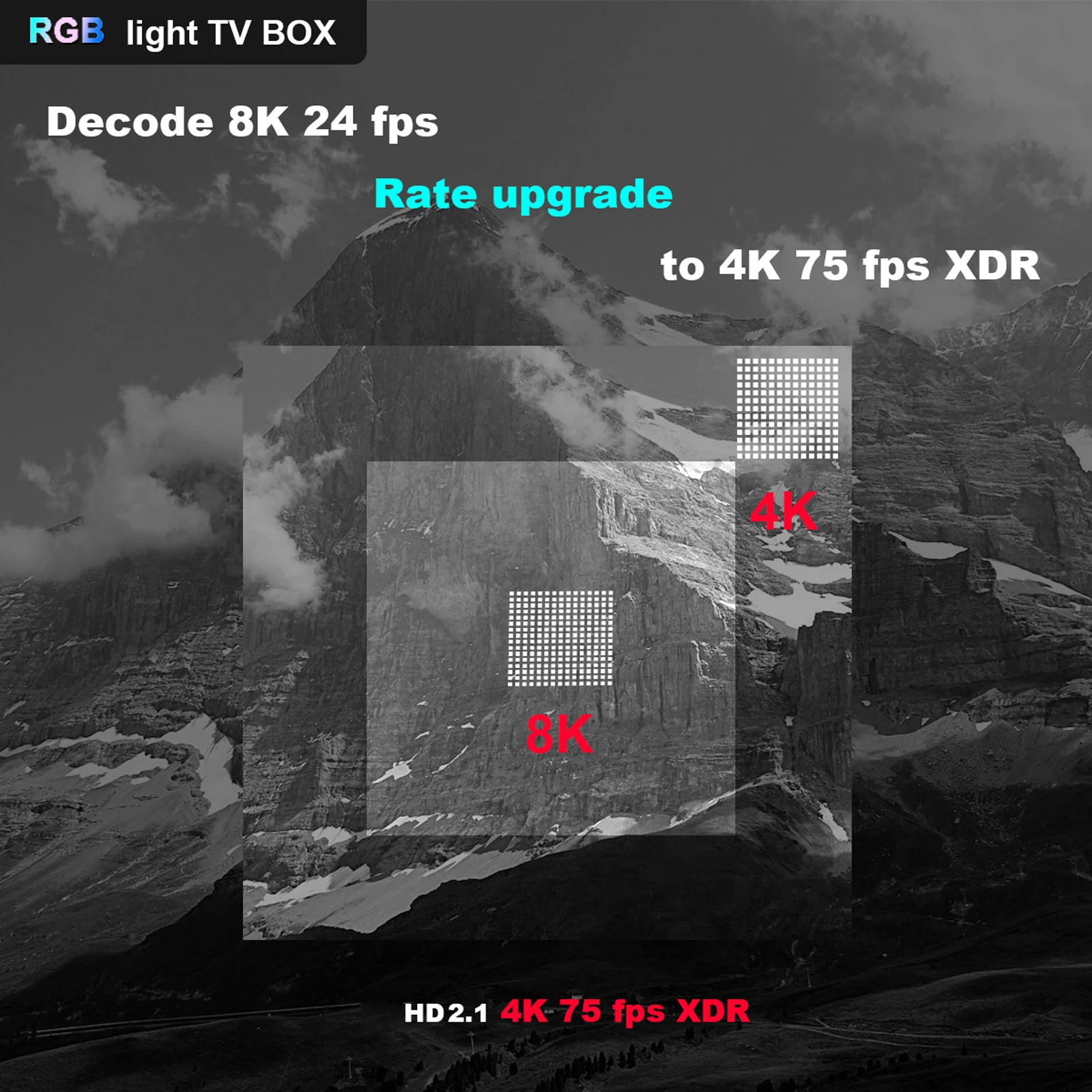 Обзор: ТВ-приставка A95X F3 Air II Smart Android может изменить ваш традиционный телевизор и ЖК-монитор в мультимедийный центр, подключив интернет (через WiFi или RJ45). Эта умная ТВ-приставка Android принесет вам много удовольствия и удобства благодаря своей мощной функции: Android 11,0, четырехъядерный процессор Amlogic S905W2, графический процессор ARM G31 MP2, 2 Гб Оперативная память + 16 Гб Встроенная память/4GB Оперативная память + 32 ГБ Встроенная память/4GB Оперативная память + 64 Гб Встроенная память по желанию, 2,4G/5G двухдиапазонный Wi-Fi BT5.0 и 100M LAN соединение. Особенности: Работает на ОС Android 11,0, которая хорошо работает в производительности, стабильности и производительности, а также с различными функциями и оптимизациями. Чипсет Amlogic S905W2 выбирает низкомощные ядра процессора A35 вместо Cortex-A55, который потребляет до 32% меньше заряда батареи для достижения такой же производительности. AV1 мощное декодирование видео может декодировать большинство форматов файлов в настоящее время и экономить 20%-30% полосы пропускания, чем H.265 и VP9. Выход 4K * 2K обеспечивает высокое разрешение просмотра и Свободное воспроизведение видео, что делает его самым высоким разрешением сигнала, доступного для домашних фильмов. 2 Гб ОЗУ и 16 Гб ПЗУ, 4 Гб ОЗУ и 32 Гб ПЗУ, 4 Гб оперативной памяти и 64 Гб ПЗУ являются дополнительными, предоставляя множество возможностей для высокоскоростной обработки данных и хранения. Поддерживает двухдиапазонный WiFi 2,4G/5G, стабильные и быстрые WiFi-сигналы. BT 5,0 поддерживает Беспроводное подключение, что позволяет быстро подключаться к устройствам BT. Примечание 1: сначала Подключите Телевизор к телевизору 4K, а затем в настройках разрешения будет отображаться Функция разрешения 4K. Примечание 2: пульт дистанционного управления продукта относится к прилагаемому и функциональному аксессуару. Если часть функций продукта не может контролироваться контроллером, пожалуйста, приобретите внешнюю мышь или воздушную мышь для работы. У вас будет лучший пользовательский опыт. Примечание 3: сначала Подключите кабель HD, прежде чем включить устройство. Основные характеристики: ОС: Android 11,0 Процессор: Amlogic S905W2 64-разрядным четырёхъядерным Cortex-A53, 1,8 ГГц Графический процессор: ARM G31 MP2 ОЗУ и ПЗУ (опционально): 2 Гб RAM + 16 Гб ROM 4 Гб RAM + 32 ГБ ROM 4 Гб RAM + 64 Гб ROM Чтение карт: Поддержка tf-карты, макс. 32 Гб WiFi: 2,4G/5G двухдиапазонный WiFi, 802,11 a/b/g/n/ac Версия BT: 5,0 LAN Ethernet: Стандартный RJ-45 10/100 м Видео декодер: AV1 MP-10, VP9 Profile-2, H.265 HEVC MP-10, AVS2-P2 профиль, H.264 AVC HP, H.264 MVC, MPEG-4 ASP, WMV/VC-1 SP/MP/AP, AVS-P16(AVS +)/AVS-P2 JiZhun профиль, MPEG-2 MP/HL, MPEG-1 MP/HL, RealVideo 8/9/10 Аудио декодер: поддерживает MP3, AAC, WMA, RM, FLAC, Ogg и программируется с 7,1/5,1 вниз-смешивание Характеристики: Номер модели: A95X F3 Air II Интерфейсы ввода/вывода: 1 * HD выход, 1 * AV выход, 1 * оптический, 2 * USB 2,0, 1 * TF слот для карт, 1 * RJ45, 1 * DC IN Питание: Вход 100-240V 50/60Hz; Выход DC 5V 2A Главный пункт Размеры: 10,5*10,5*2,0 см/4,13*4,13 * 0.78in Основной вес изделия: 116 г/4,09 унций Размер посылка: 20,2*12,5*5,5 см/7,95*4,92*2,16 дюймов Посылка Вес: 343g/12,09 oz Упаковочный лист: 1 * ТВ-приставка A95X F3 Air II 1 * Адаптер питания 1 * пульт дистанционного управления 1 * HD кабель 1 * Руководство пользователя (EN/DE/FR/ES/IT/PY/PO)