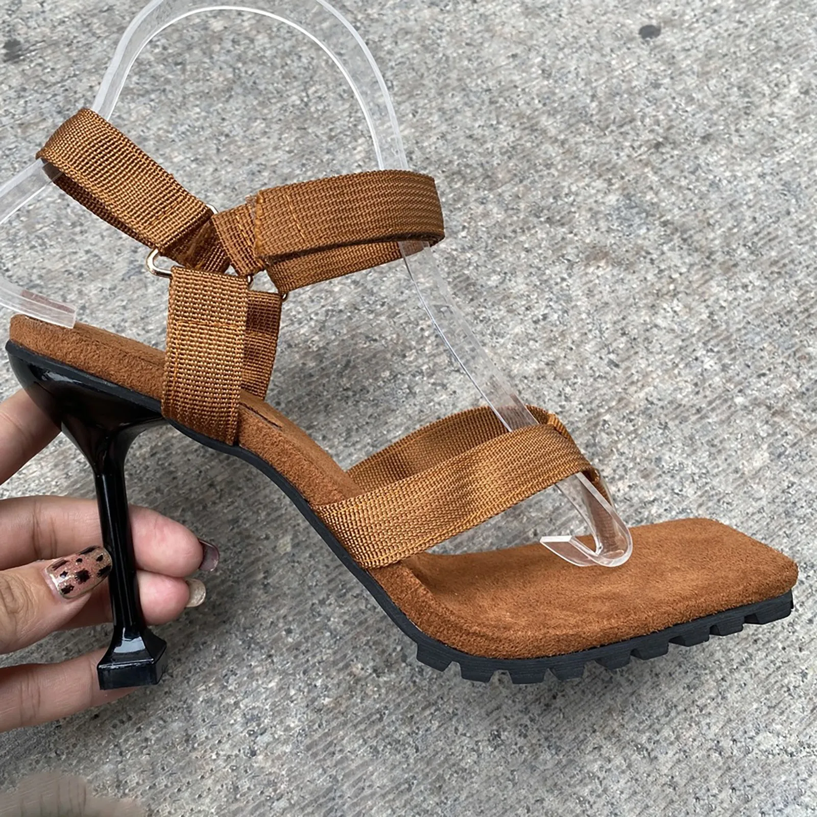 Сандалии женские на высоком тонком каблуке, пикантные модные однотонные туфли, Нескользящие, Уличная обувь для вечерние НКИ, клуба, с застежкой-носком, гладиаторы, #35