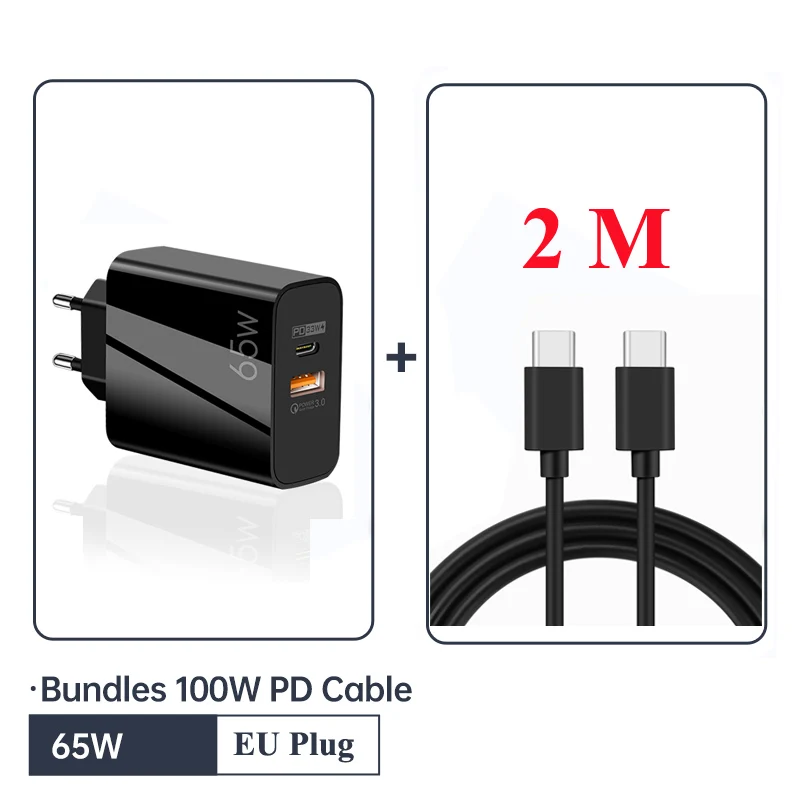 Зарядное устройство USB C на 2 порта, 65 Вт, QC 3,0 PD 3,0 GaN