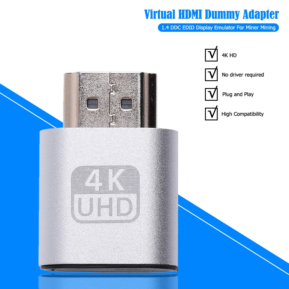 HDMI виртуальный дисплей 4K HDMI подключаемый разъем DDC EDID Чит виртуальный разъем HDMI муляж эмулятор адаптер для майнинга биткоинов