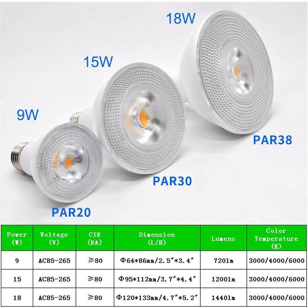 Прямая поставка, Светодиодный точечный светильник E27, 9 Вт, 15 Вт, 18 Вт, Светодиодный точечный светильник par20, par30, par38, светодиодный лампы, лампы, 85 265 В переменного тока, потолочный светильник, светильник щение