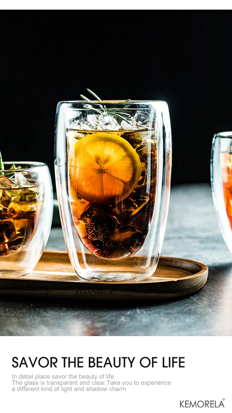 Термостойкая стеклянная чашка с двойными стенками для молока, виски, чая, пива, прозрачного пива, эспрессо, кофейная чашка, посуда для напитков, чашки, питьевое стекло, es