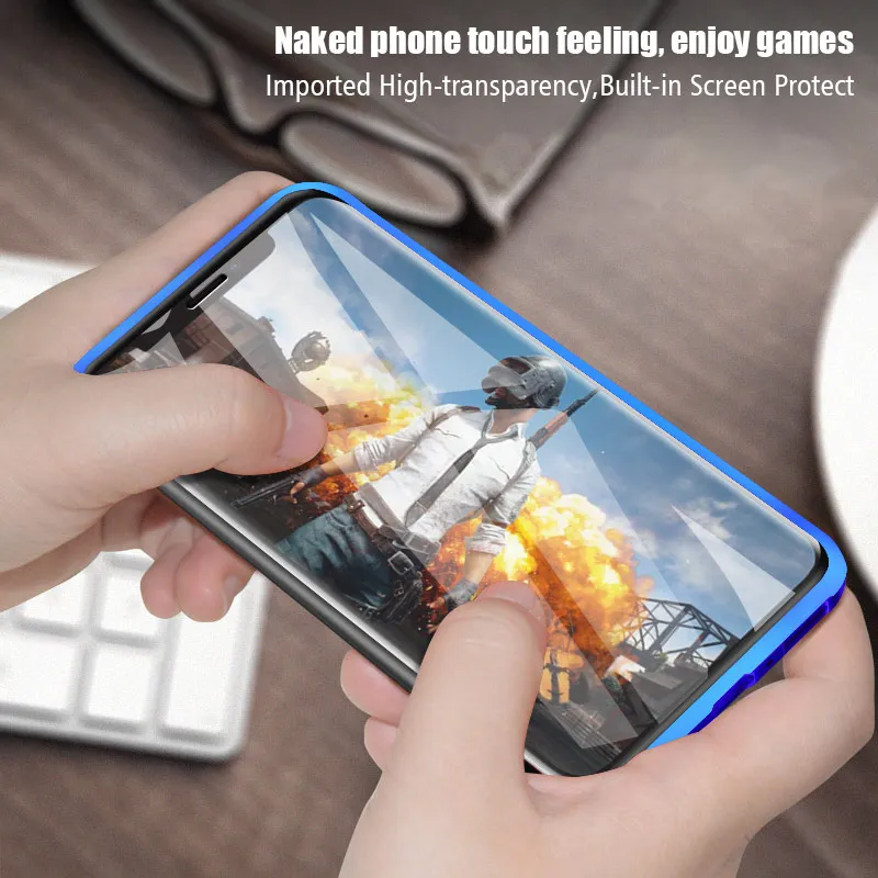 Features 2Magnetic Adsorption Metal Bumper Tempered Glass Back Phone Case