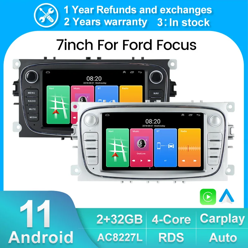 Автомагнитола 2 Din на Android 11, мультимедийный плеер 2 Din с 7-дюймовым экраном, DVD для Ford Focus S-Max Mondeo Galaxy C-Max Kuga Navi GPS BT