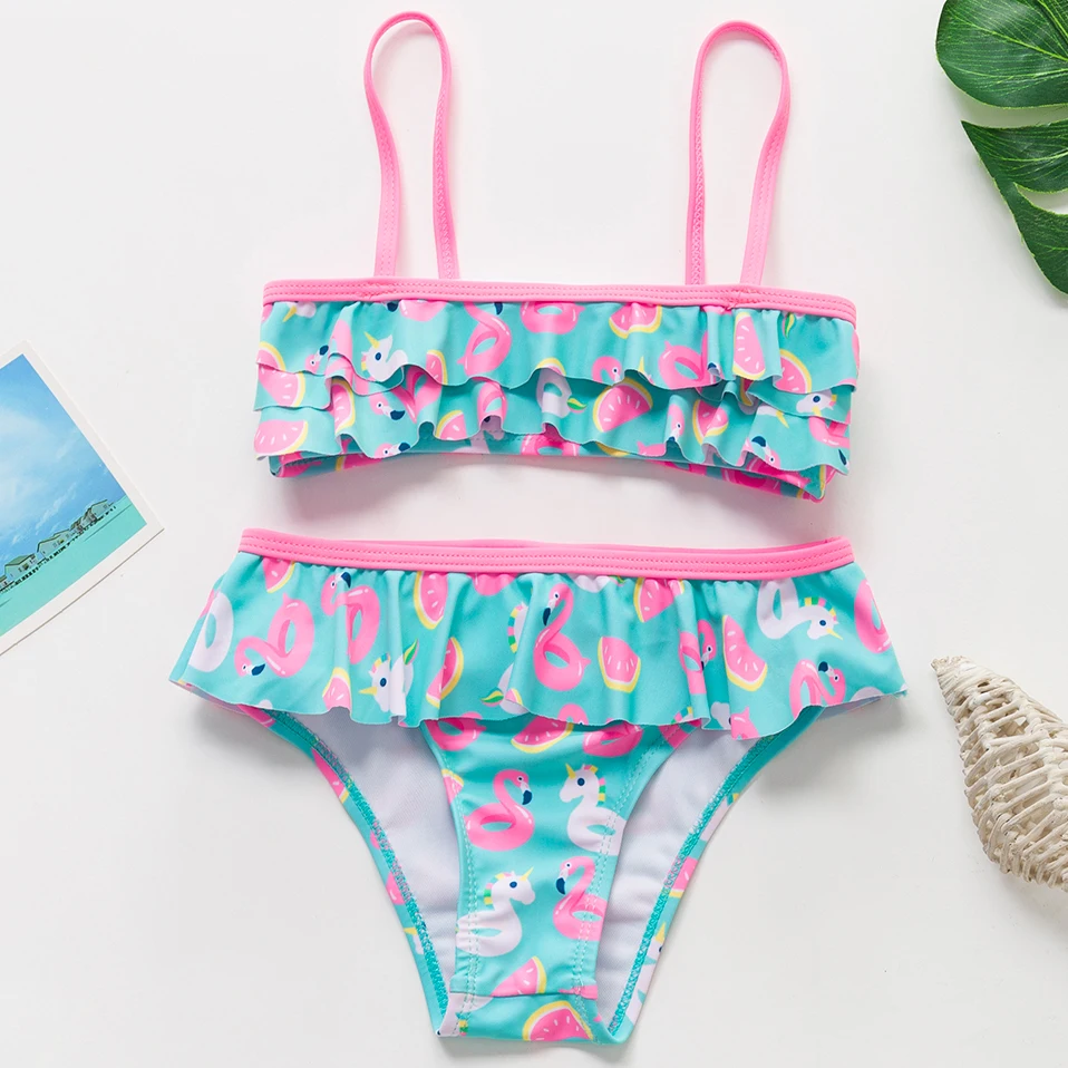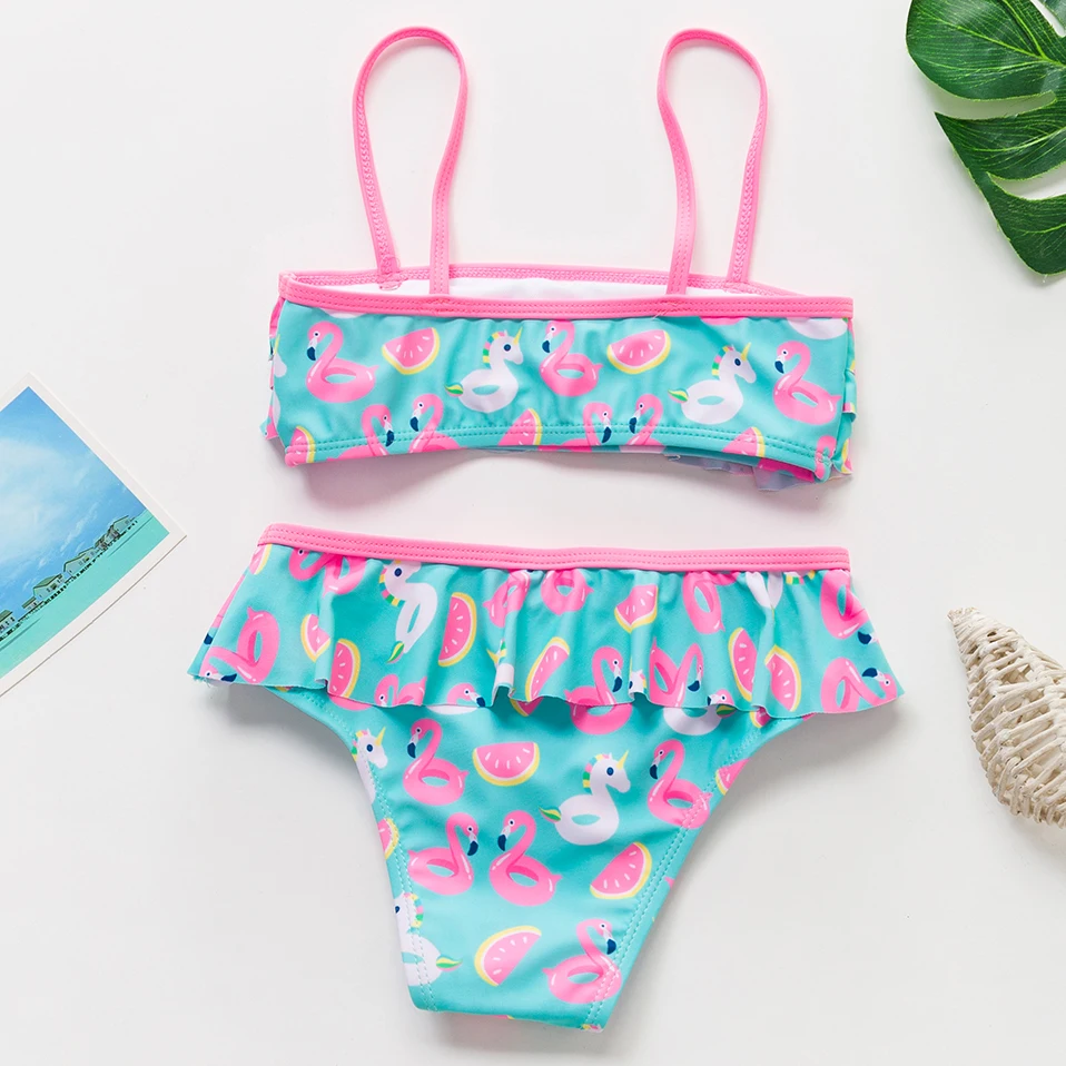 Женский купальник-бикини для девочек, новинка 2022, комплект из двух предметов для маленьких девочек, летние купальные костюмы, купальник-бикини с фламинго