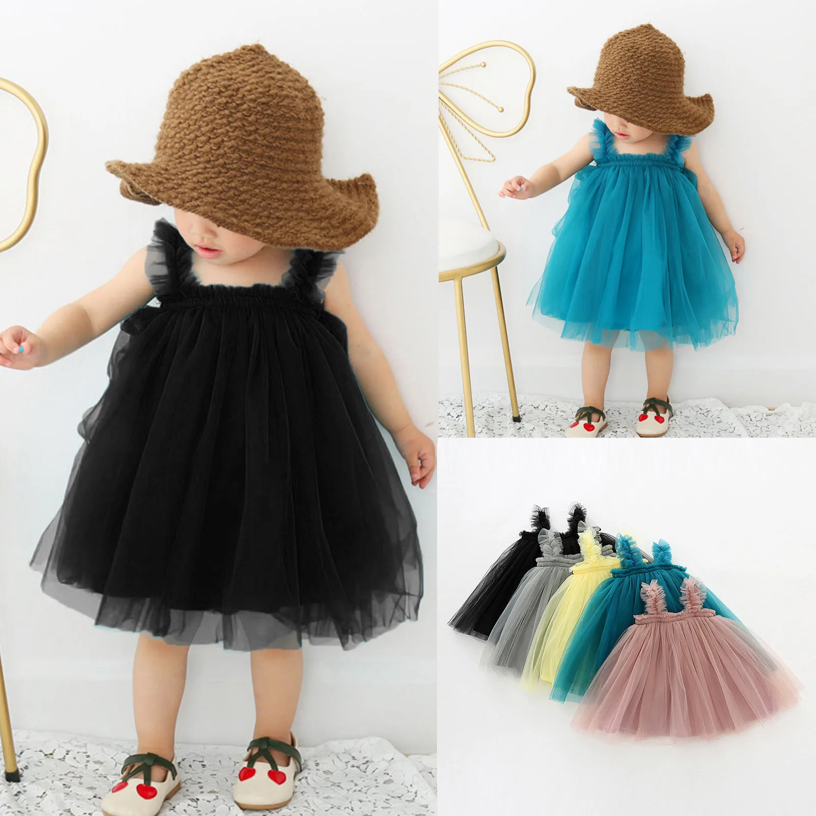 Детское фатиновое платье на бретельках, без рукавов, на возраст 12-4 лет