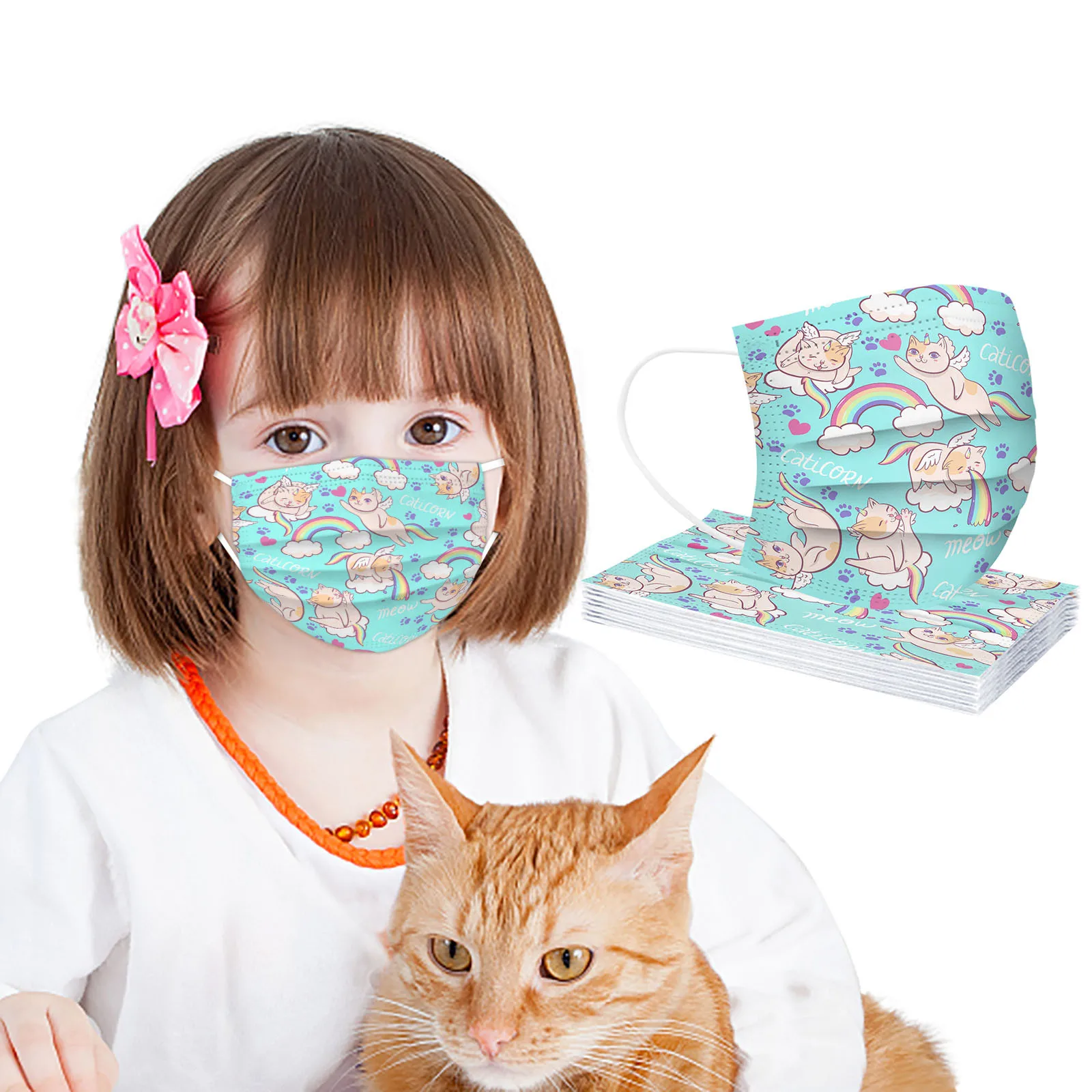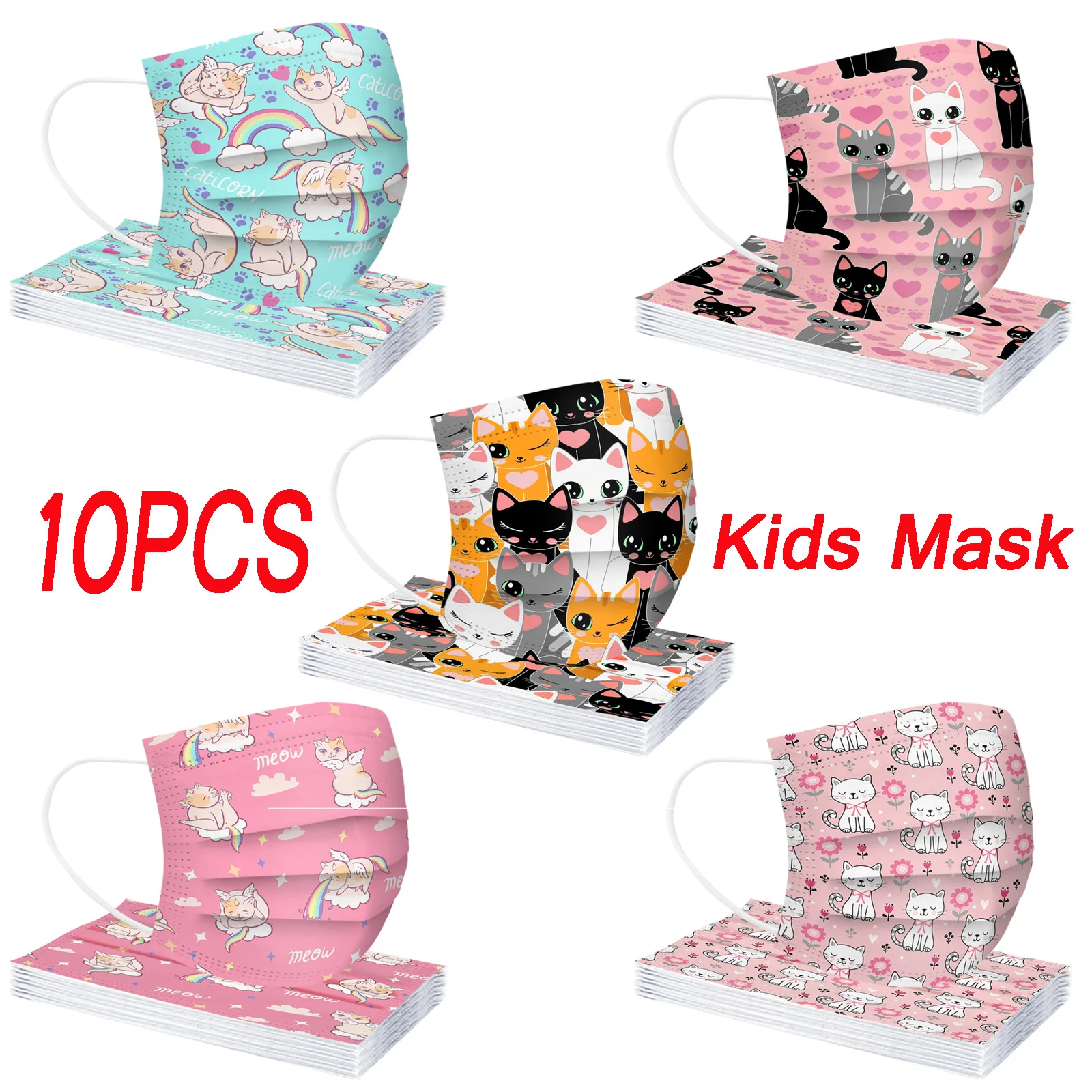 10 шт., детская одноразовая маска для лица с кошачьим принтом