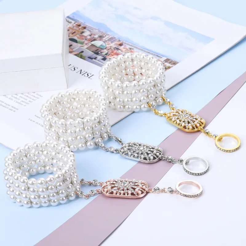 Браслет Гэтсби женский декоративный, модное Ювелирное Украшение с жемчугом для невесты, эластичный австрийский браслет подружки невесты