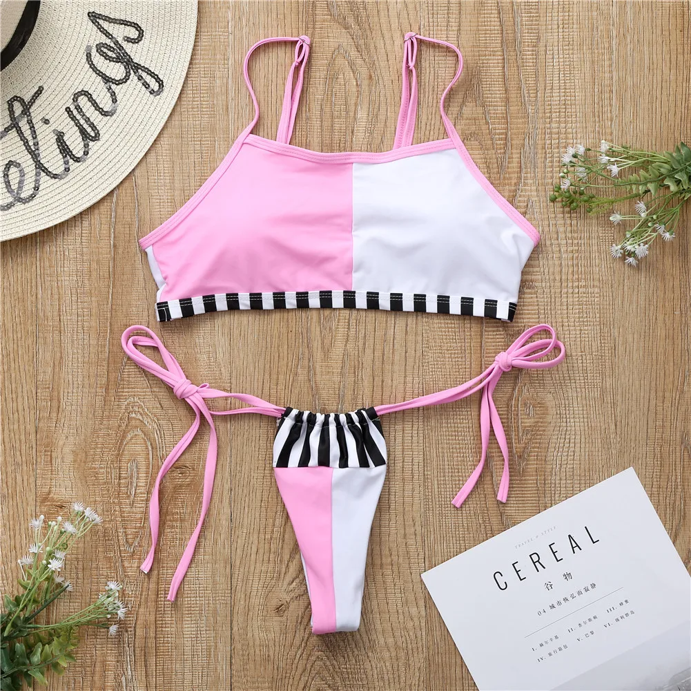 Бикини 2022 сексуальный купальник женский полосатый лоскутный бикини набор купальный костюм пляжное бикини женский пуш-ап бикини Feminino