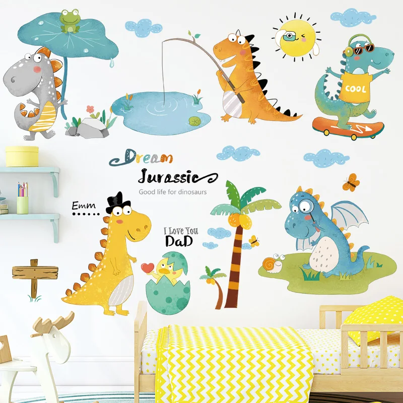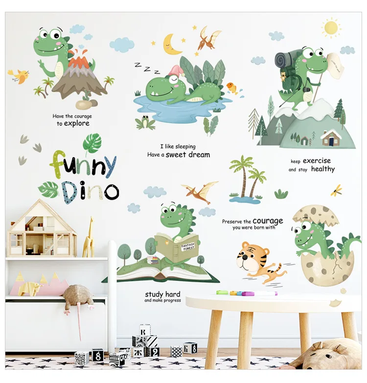 Мультяшные забавные наклейки на стену в виде динозавра для декора детской комнаты, съемные настенные наклейки из ПВХ, самоклеящиеся наклейки сделай сам для домашнего декора