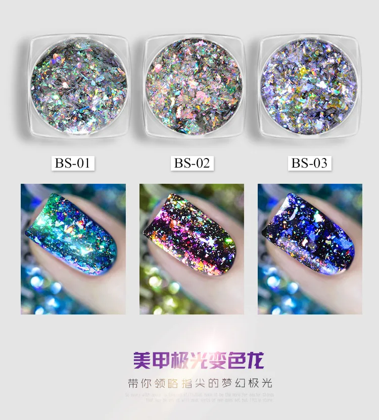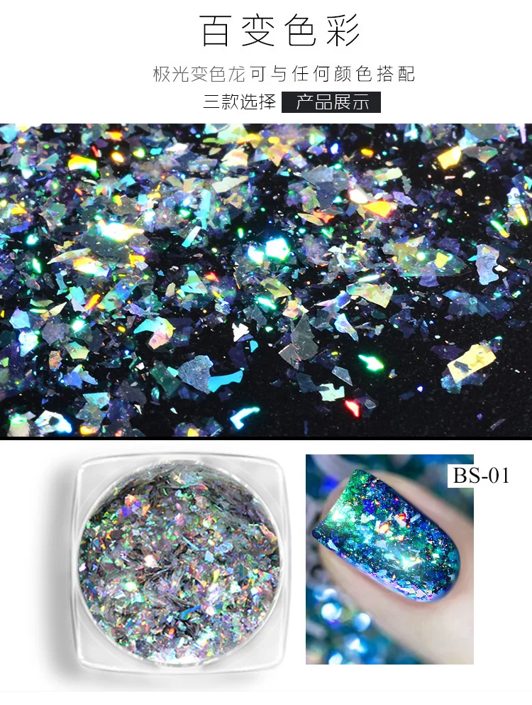 1 баночка 0,2 г Блестящий лазер Аврора Хамелеон грубые нестандартные голографические блестки Волшебная фотография Маникюр палитра пыль