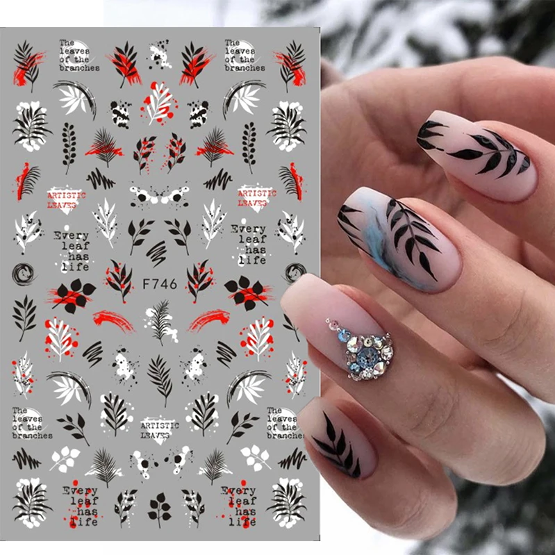 3D-Наклейки для ногтей с черными и белыми листьями, Переводные Слайдеры для маникюра, фольги, декора, бабочки, лозы, розы