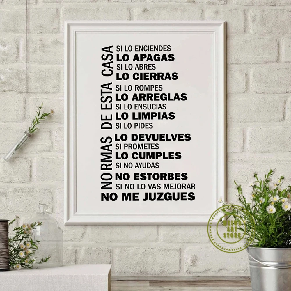 Испанский дом правила цитаты плакат Современный Espanol Холст Картина Настенная живопись картина для гостиной украшения