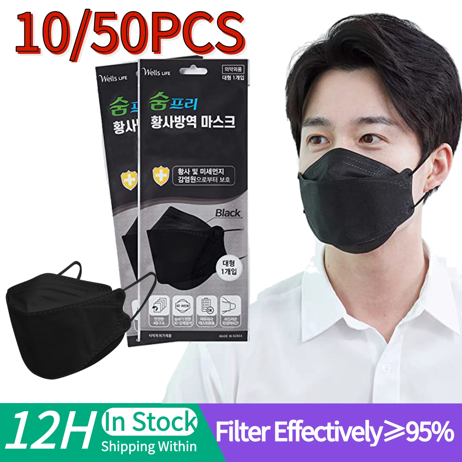 10-150 шт. KF корейские 94 маски черные FFP2 Сертифицированные CE m...