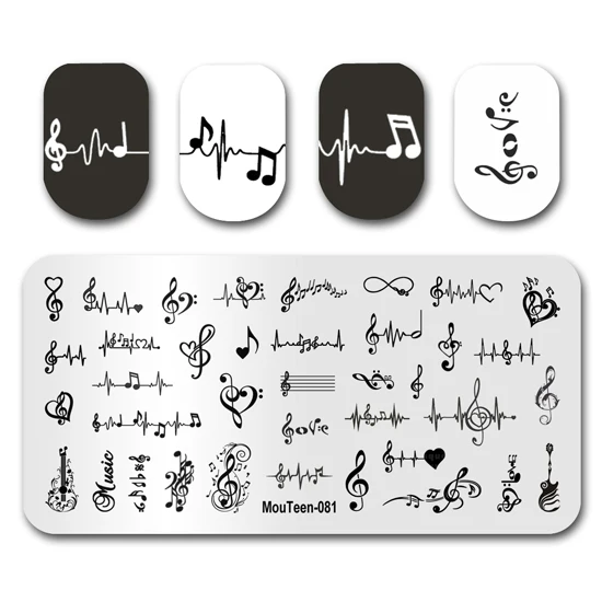 Штамп для ногтей MouTeen081, музыкальная электрокардиограмма, музыкальные ногти, пластины для ногтей, набор для стемпинга ногтей