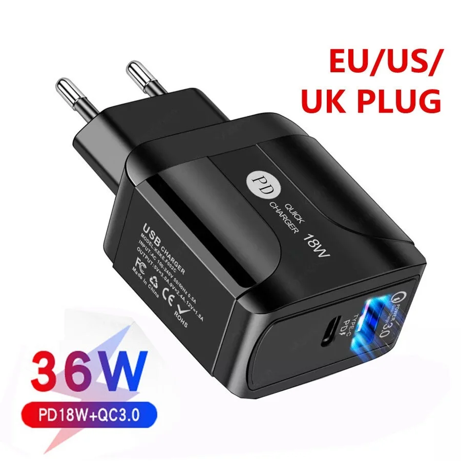 Быстрое зарядное устройство USB 36 Вт, быстрая зарядка 3,0, Тип C P...